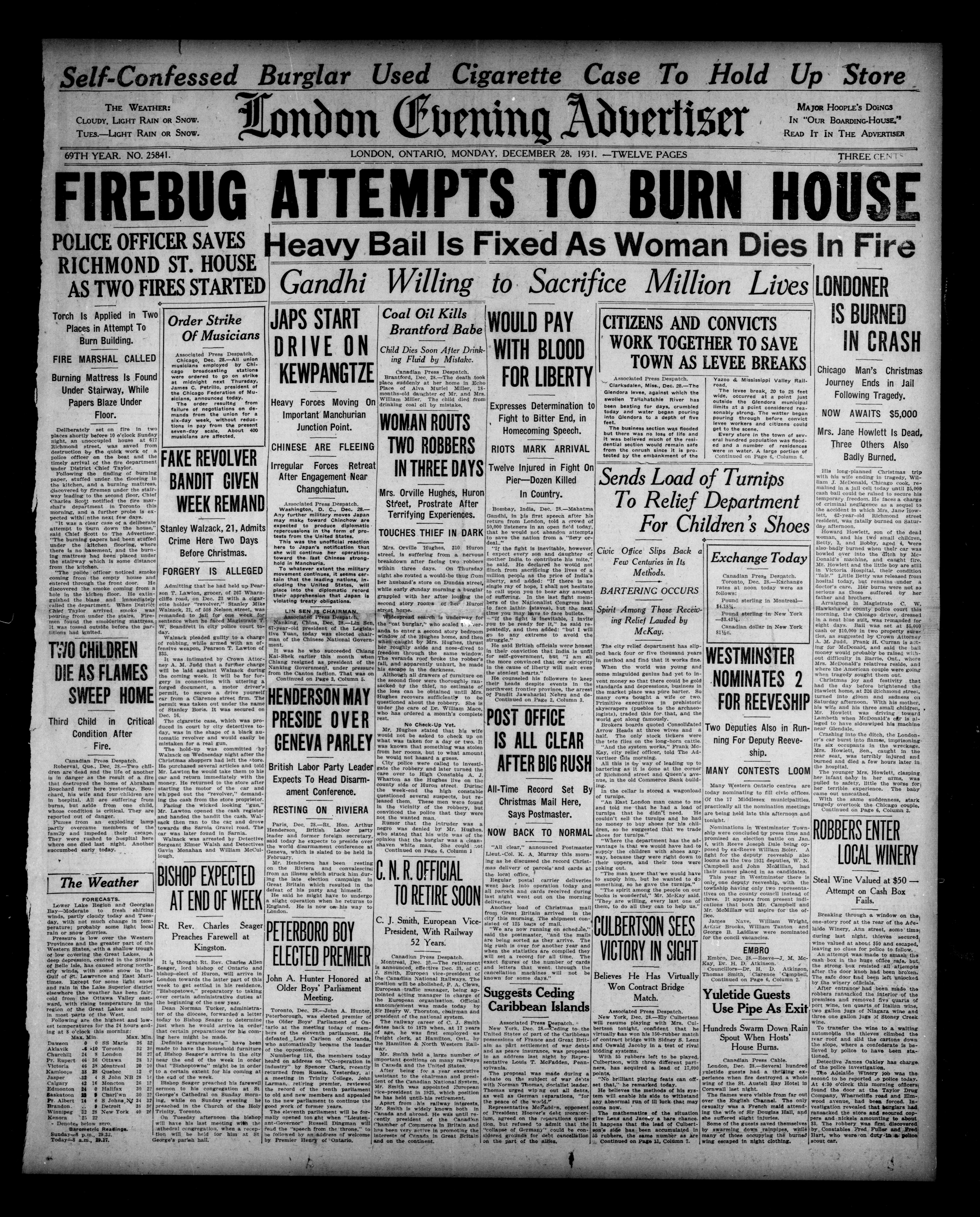 London, Ontario : London Advertiser Company, Limited, [1931]; 12 images, 0 avec recherche en texte intégral