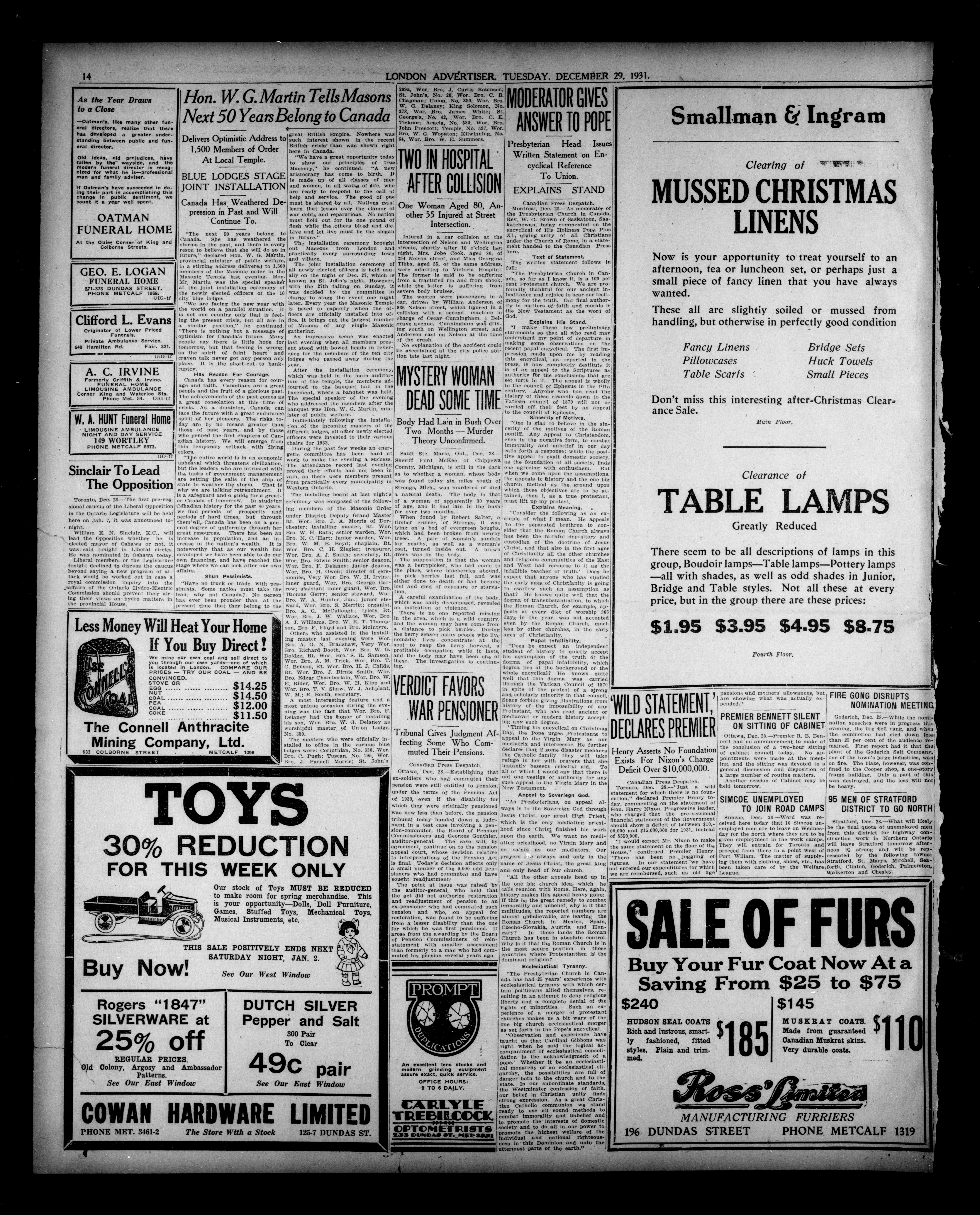 Aide London, Ontario : London Advertiser Company, Limited, [1931]; 14 images, 0 avec recherche en texte intégral