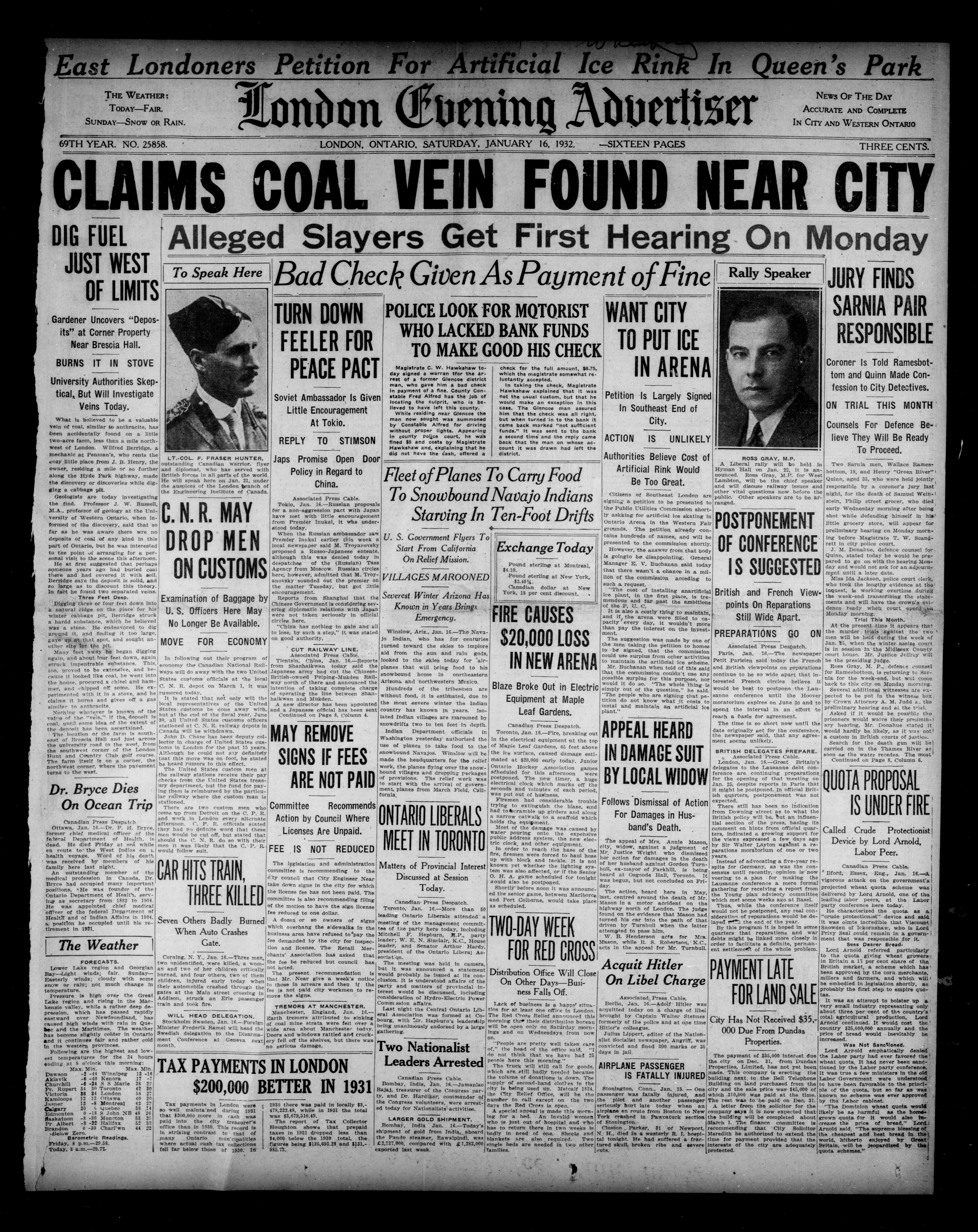London, Ontario : London Advertiser Company, Limited, [1932]; 16 images, 0 avec recherche en texte intégral