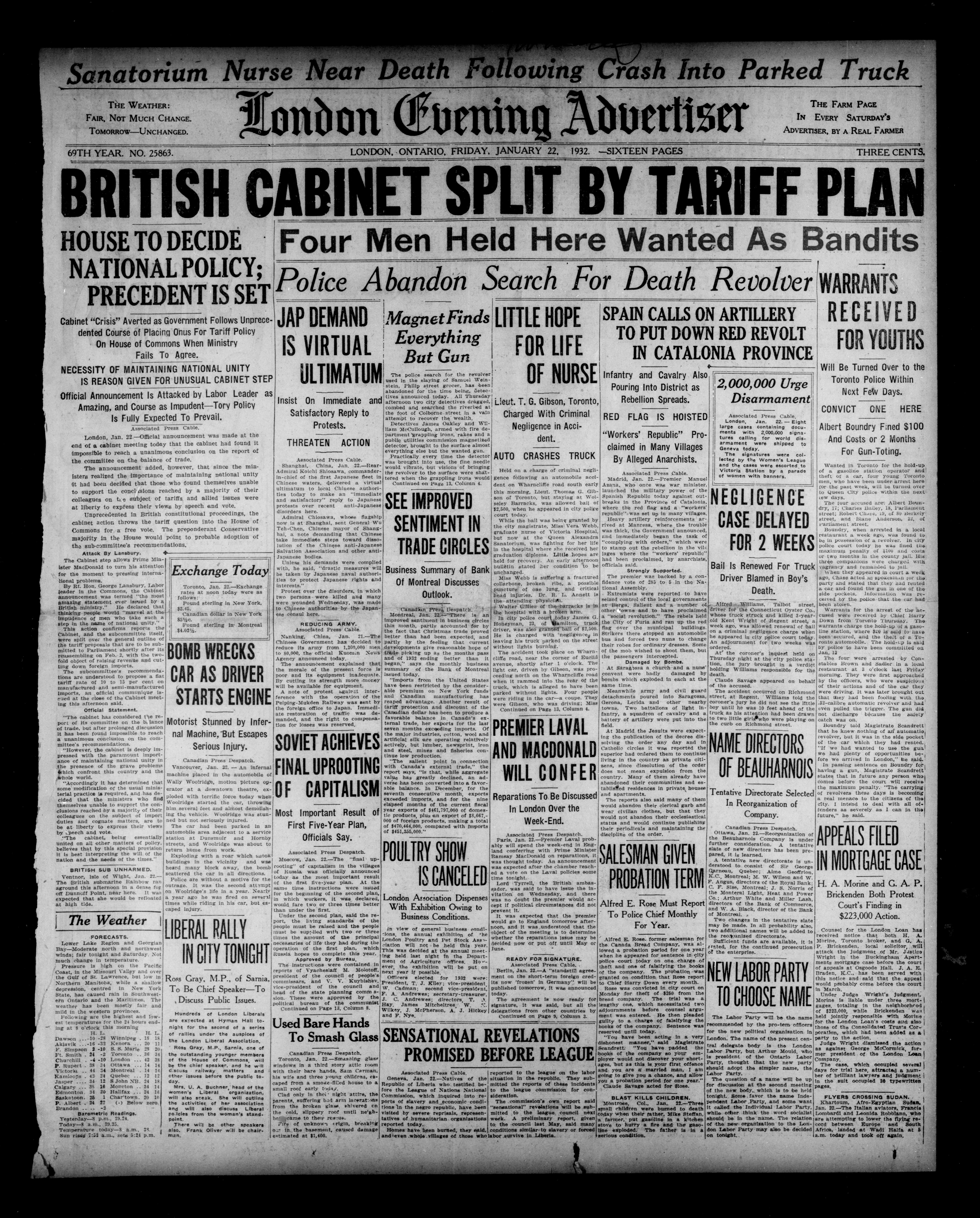 Aide London, Ontario : London Advertiser Company, Limited, [1932]; 16 images, 0 avec recherche en texte intégral