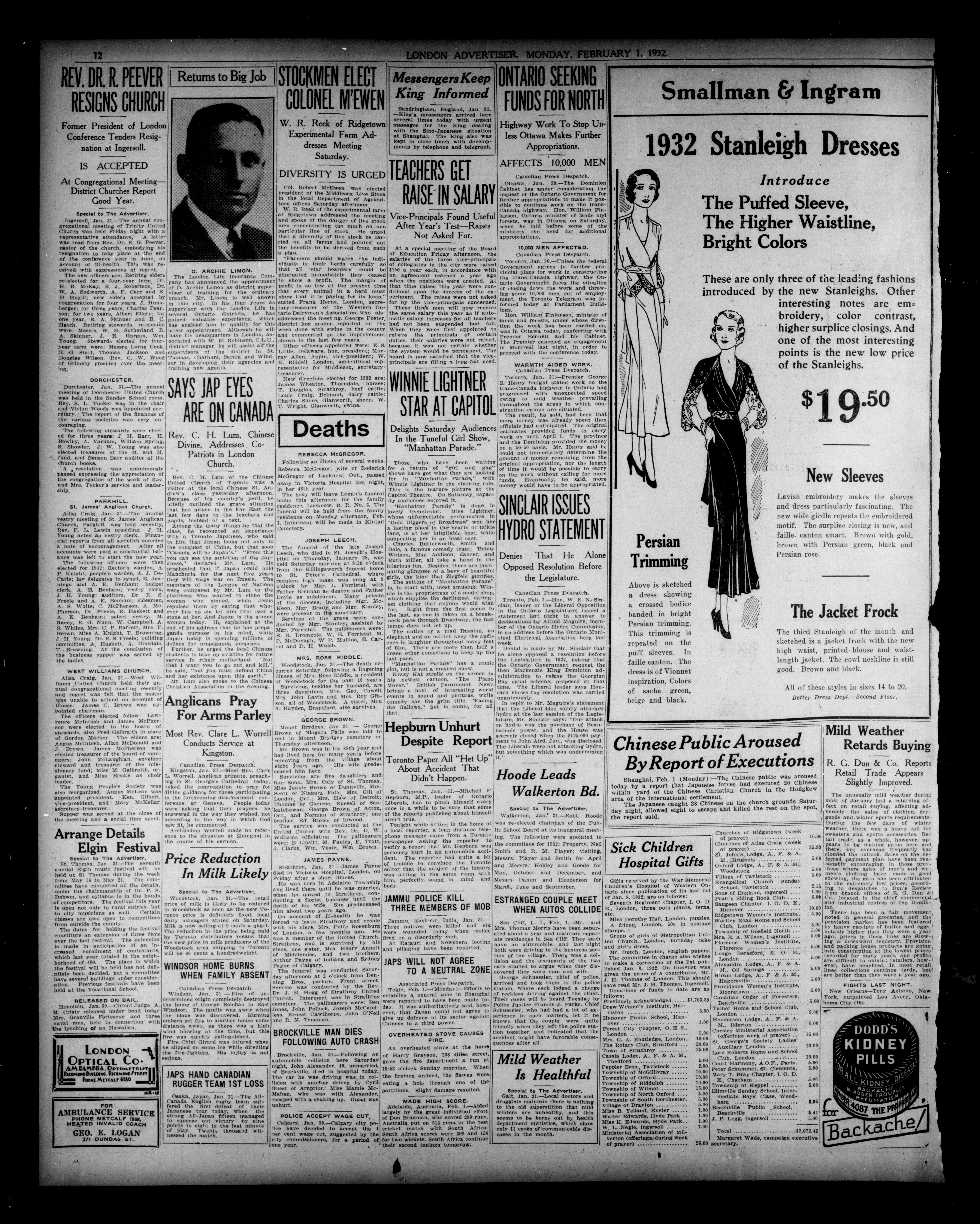 London, Ontario : London Advertiser Company, Limited, [1932]; 12 images, 0 avec recherche en texte intégral