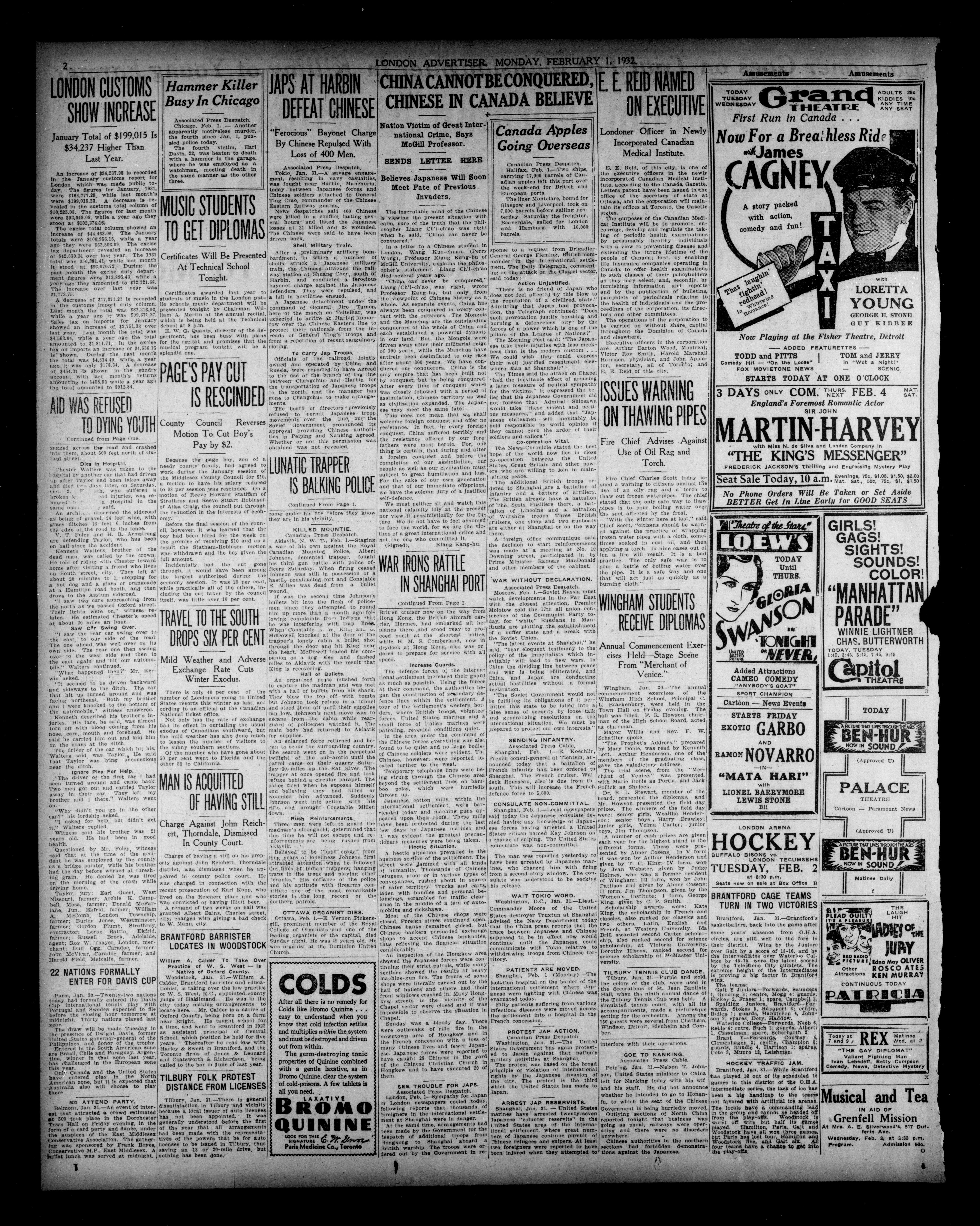 London, Ontario : London Advertiser Company, Limited, [1932]; 12 images, 0 avec recherche en texte intégral
