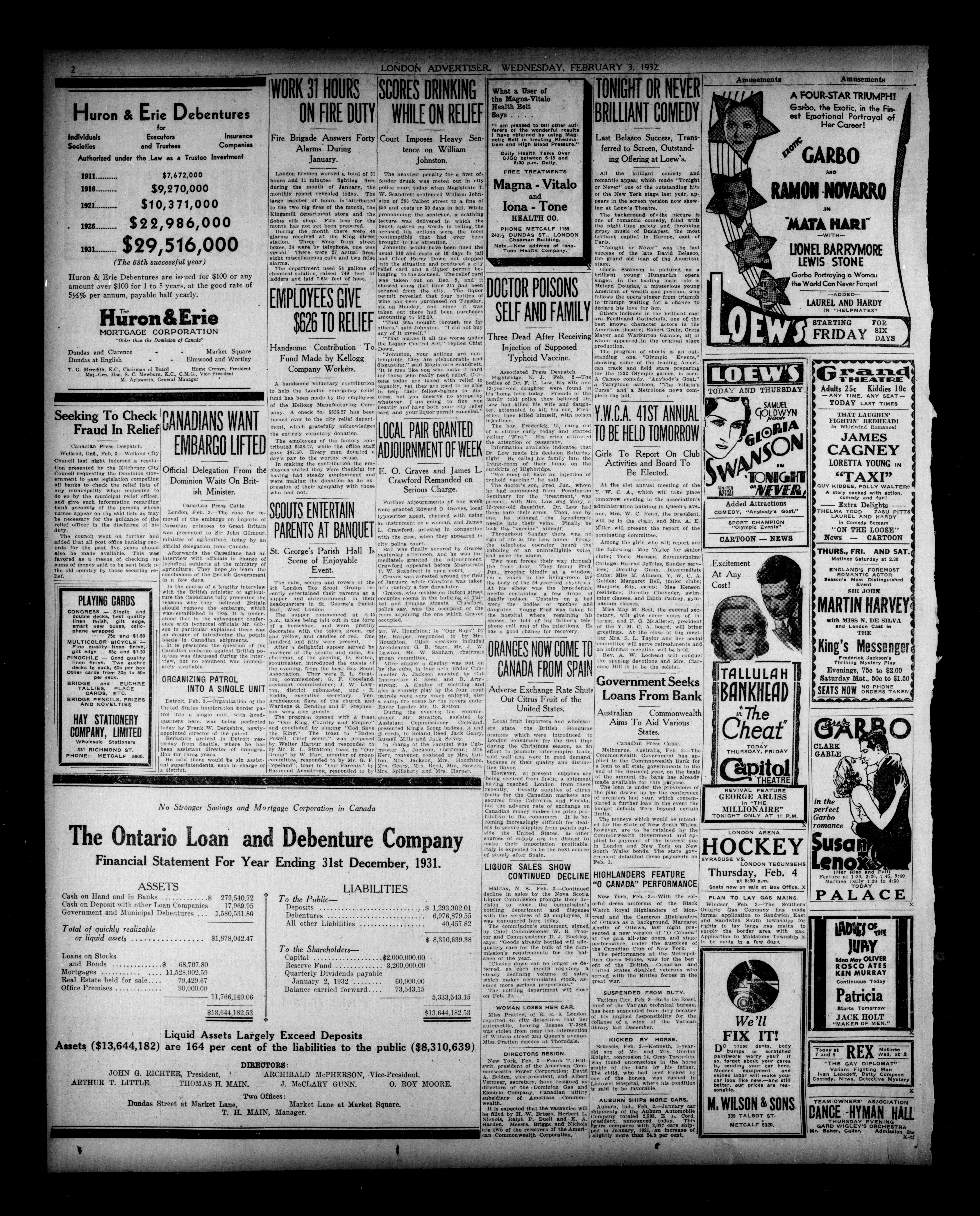 London, Ontario : London Advertiser Company, Limited, [1932]; 12 images, 0 avec recherche en texte intégral