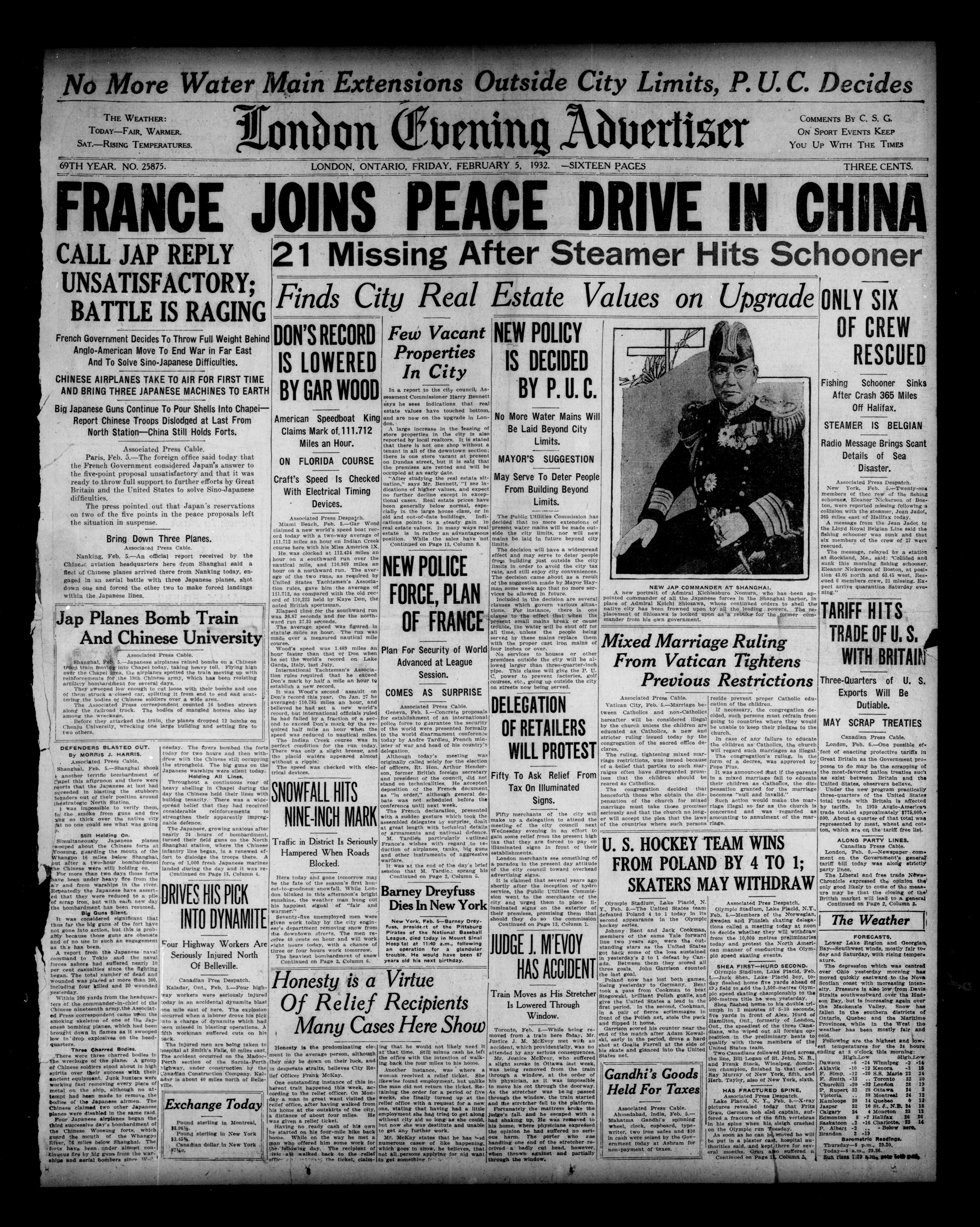 London evening advertiser : 69th Year, No. 25875 (February 5, 1932) - Adresse bibliographique