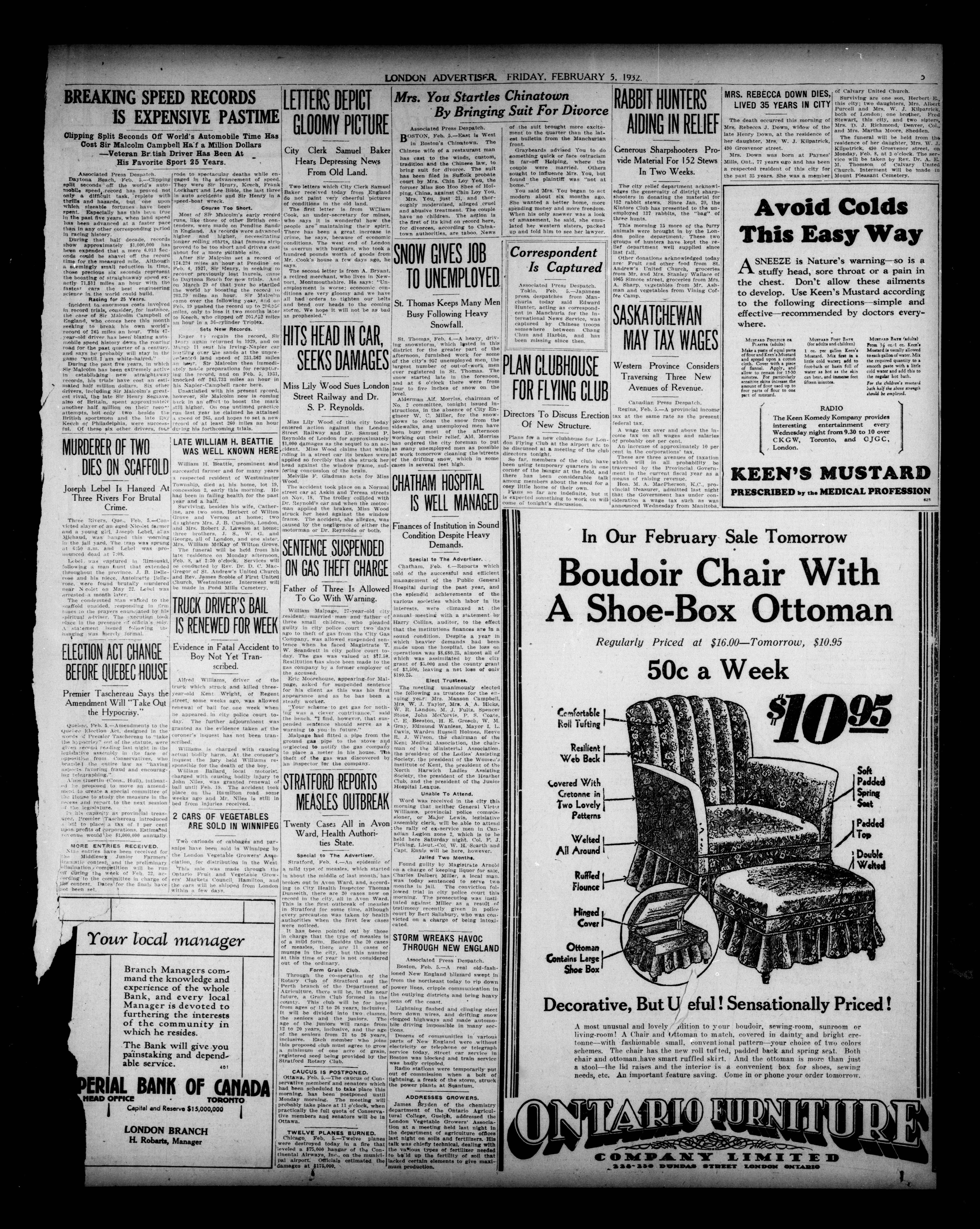 London, Ontario : London Advertiser Company, Limited, [1932]; 16 images, 0 avec recherche en texte intégral