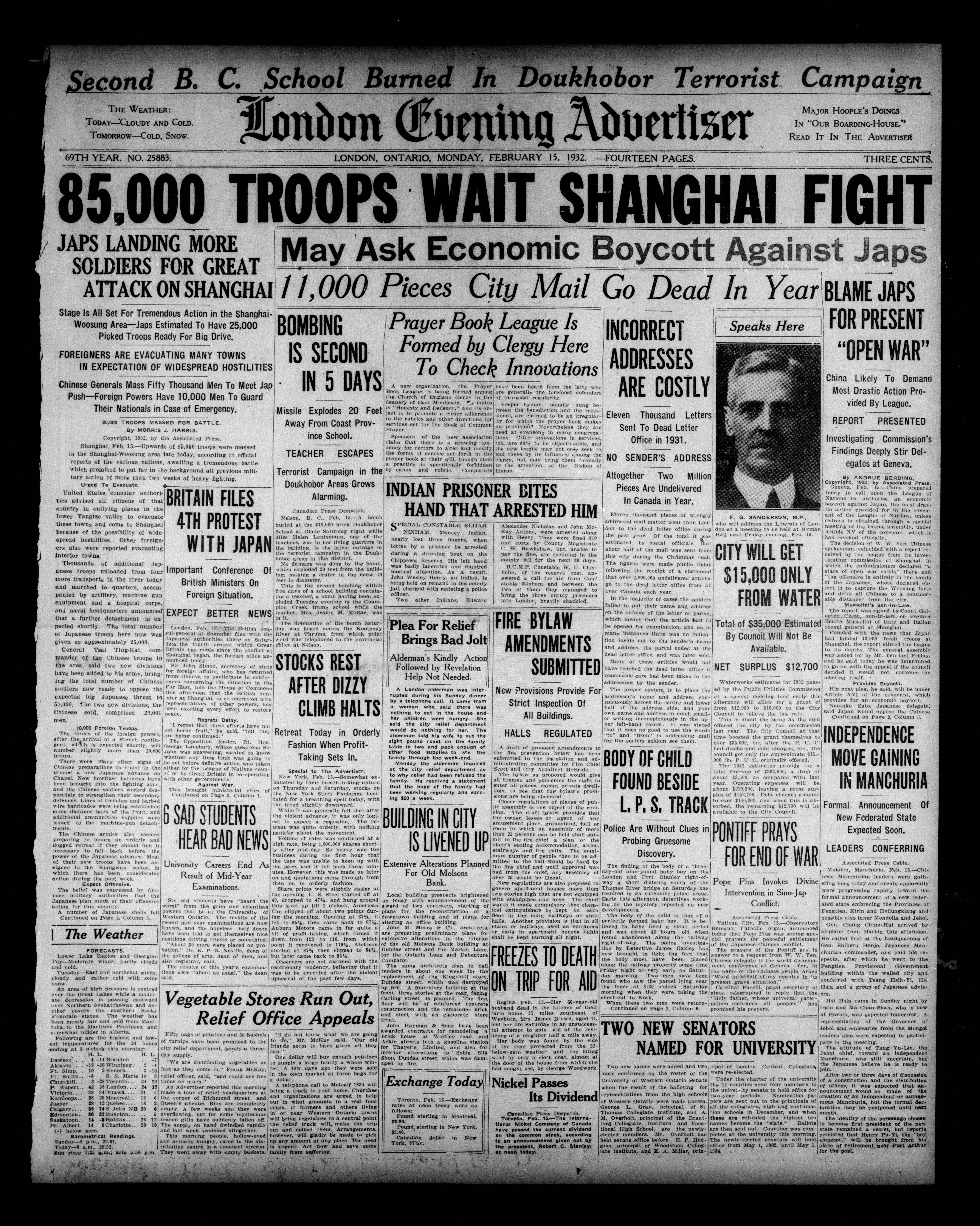 London evening advertiser : 69th Year, No. 25883 (February 15, 1932) - Published