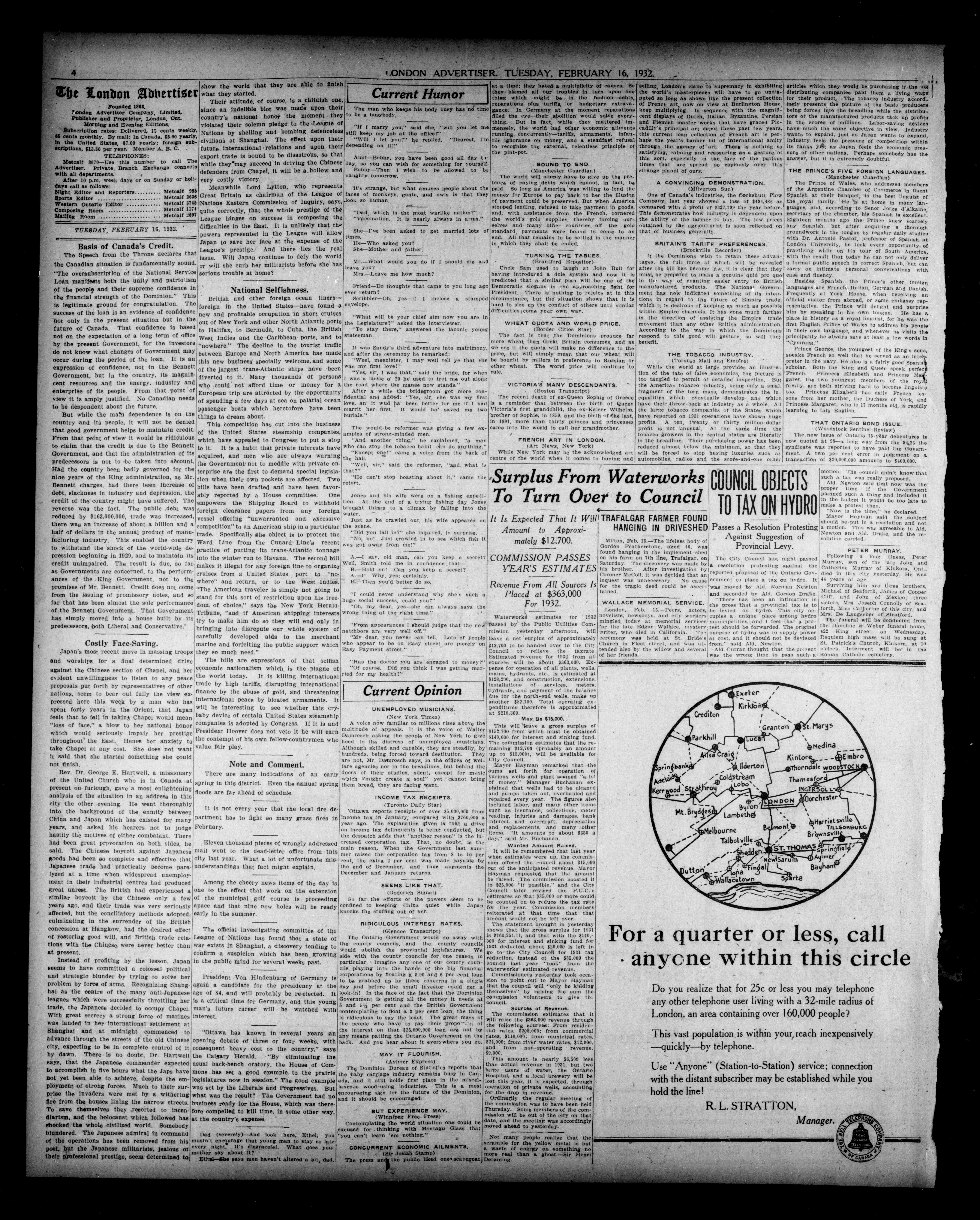 London, Ontario : London Advertiser Company, Limited, [1932]