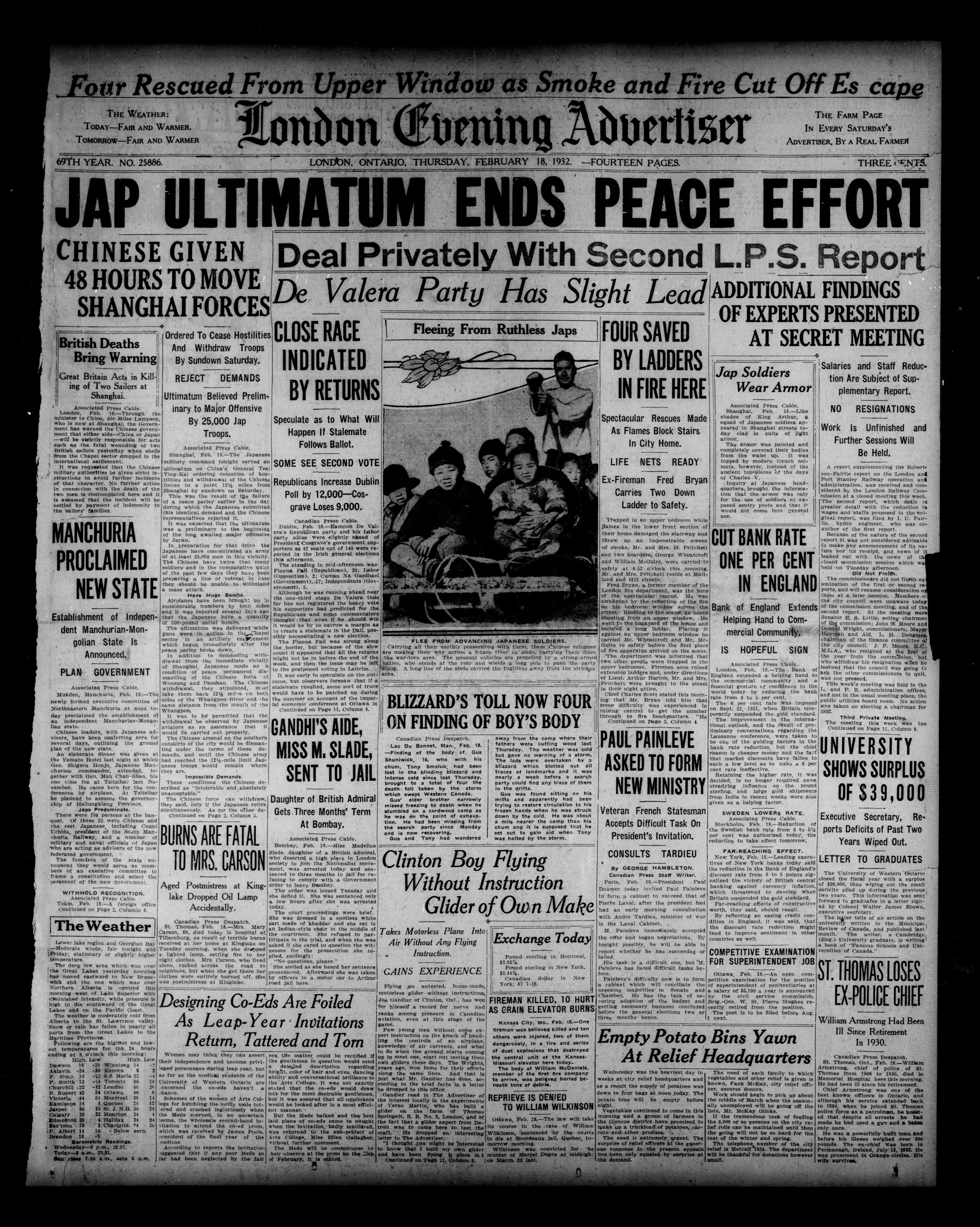 London, Ontario : London Advertiser Company, Limited, [1932]; 14 images, 0 avec recherche en texte intégral