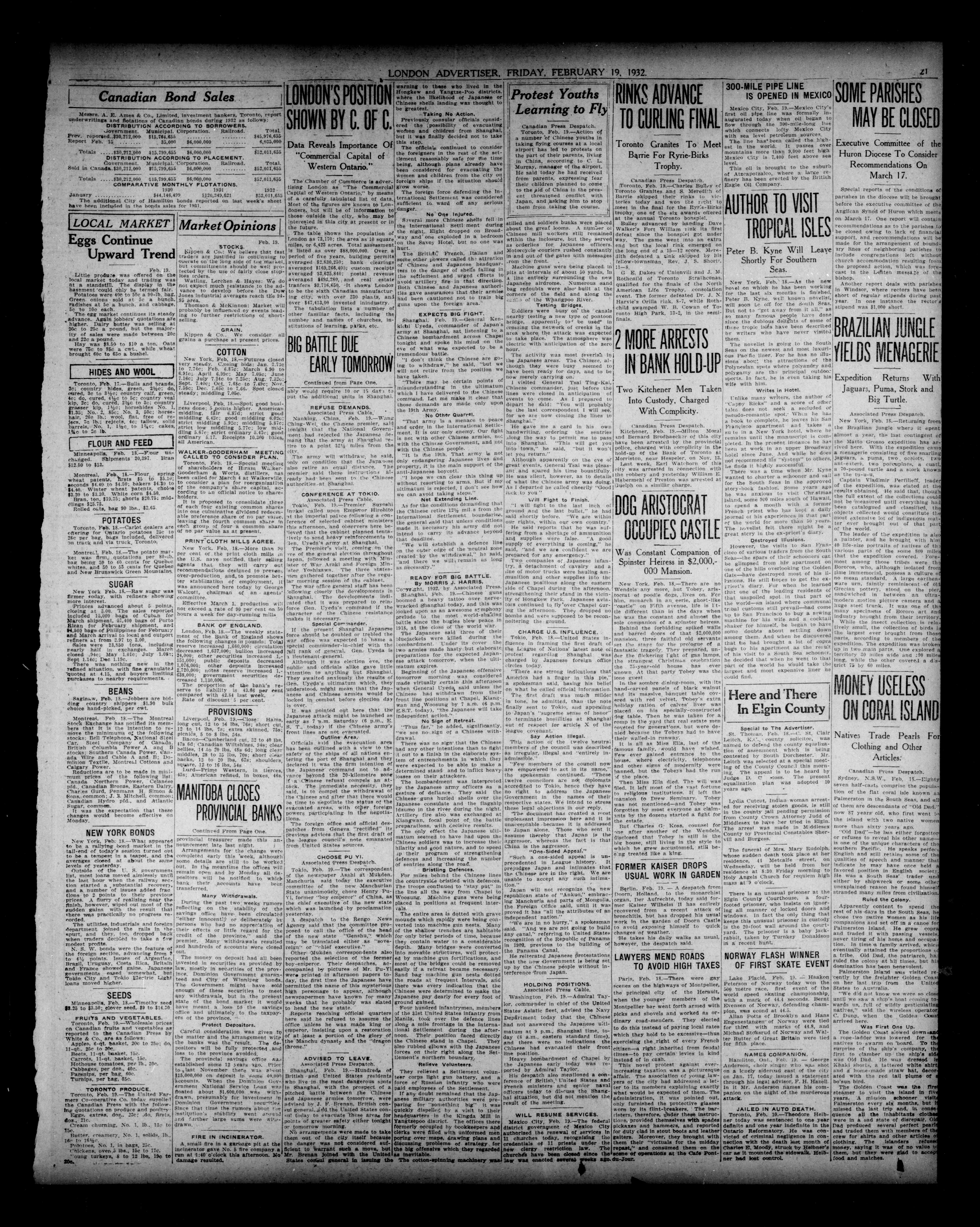 London evening advertiser : 69th Year, No. 25887 (February 19, 1932)