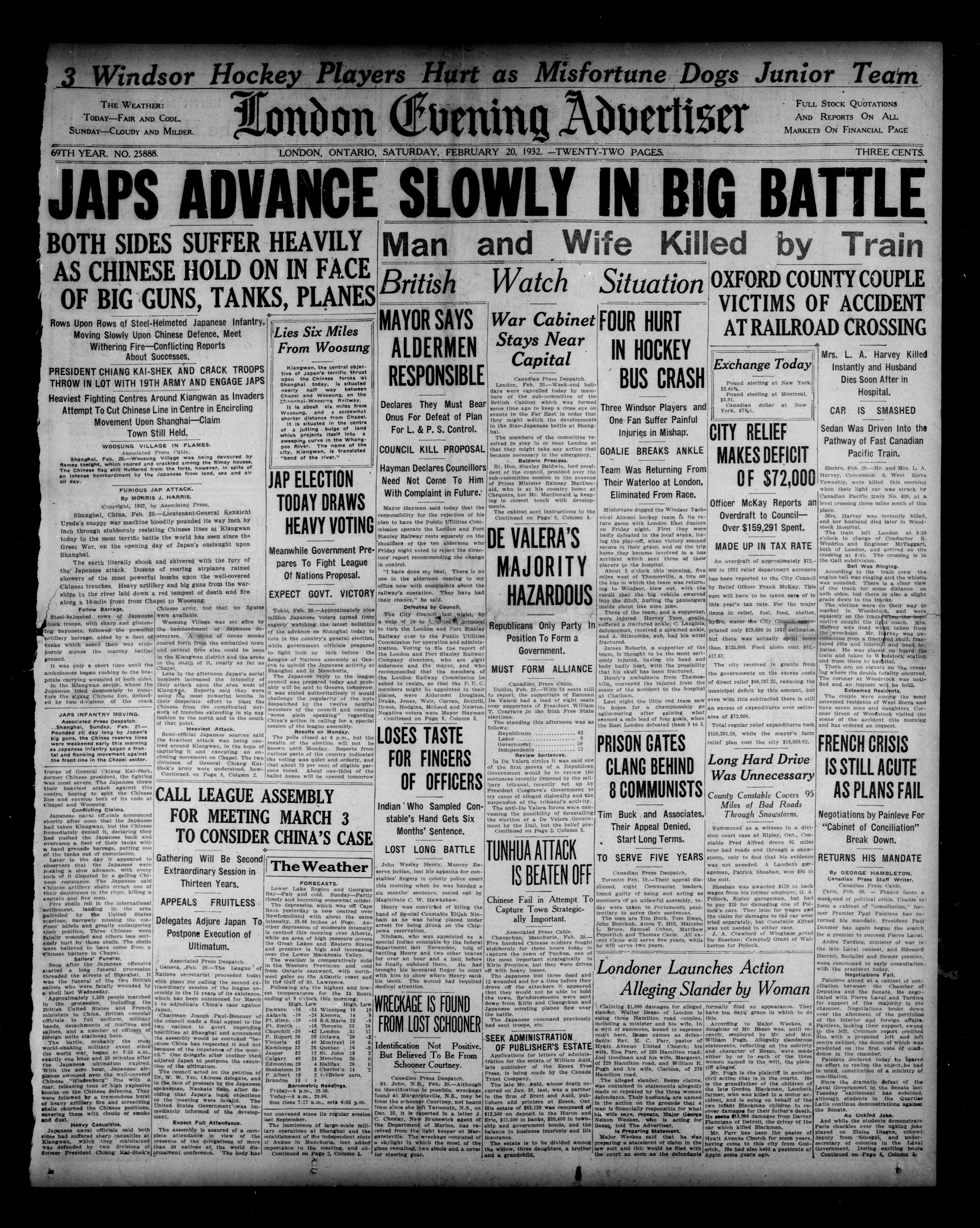 London, Ontario : London Advertiser Company, Limited, [1932]; 22 images, 0 avec recherche en texte intégral