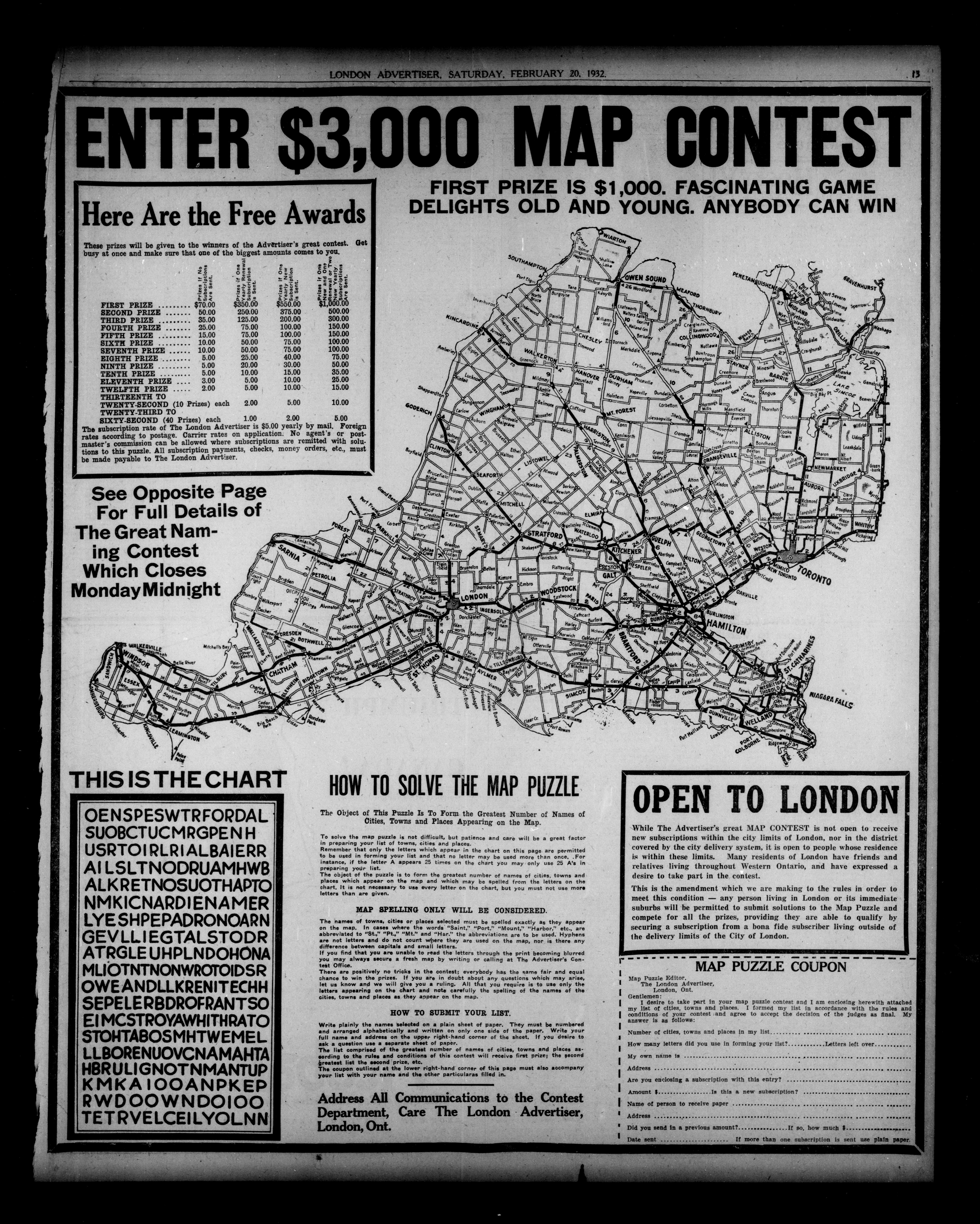 London, Ontario : London Advertiser Company, Limited, [1932]; 22 images, 0 avec recherche en texte intégral