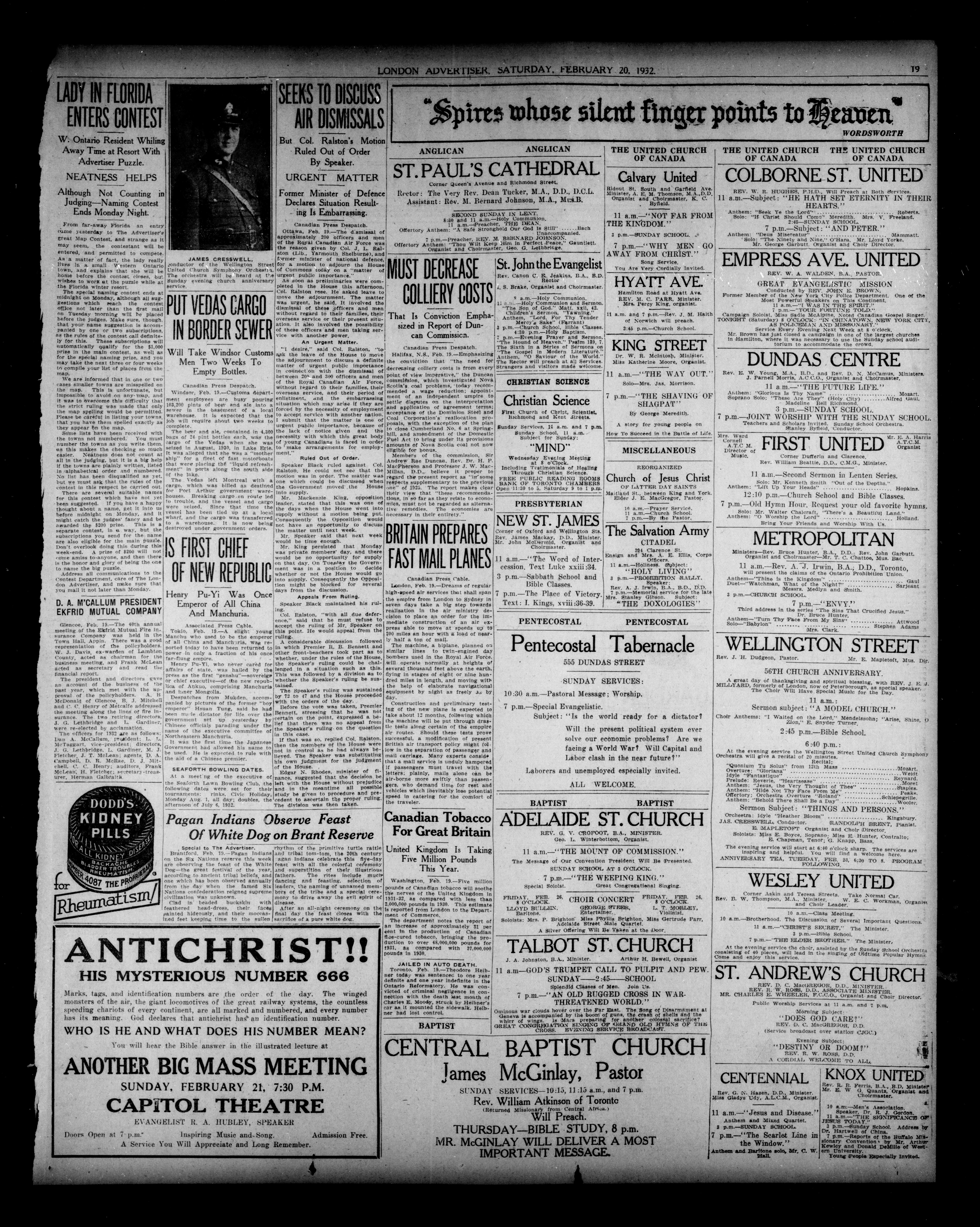 London, Ontario : London Advertiser Company, Limited, [1932]; 22 images, 0 avec recherche en texte intégral