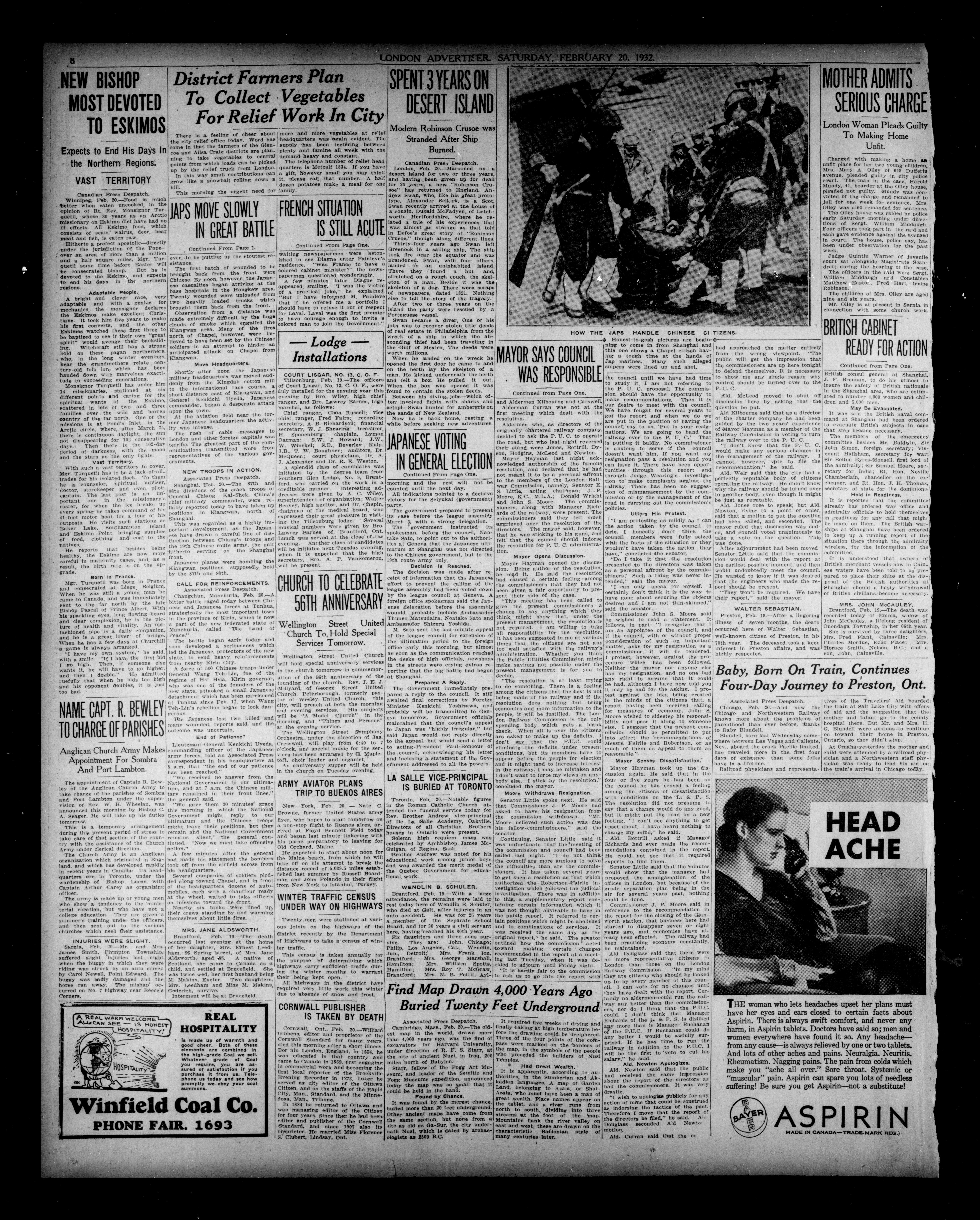 London, Ontario : London Advertiser Company, Limited, [1932]; 22 images, 0 avec recherche en texte intégral