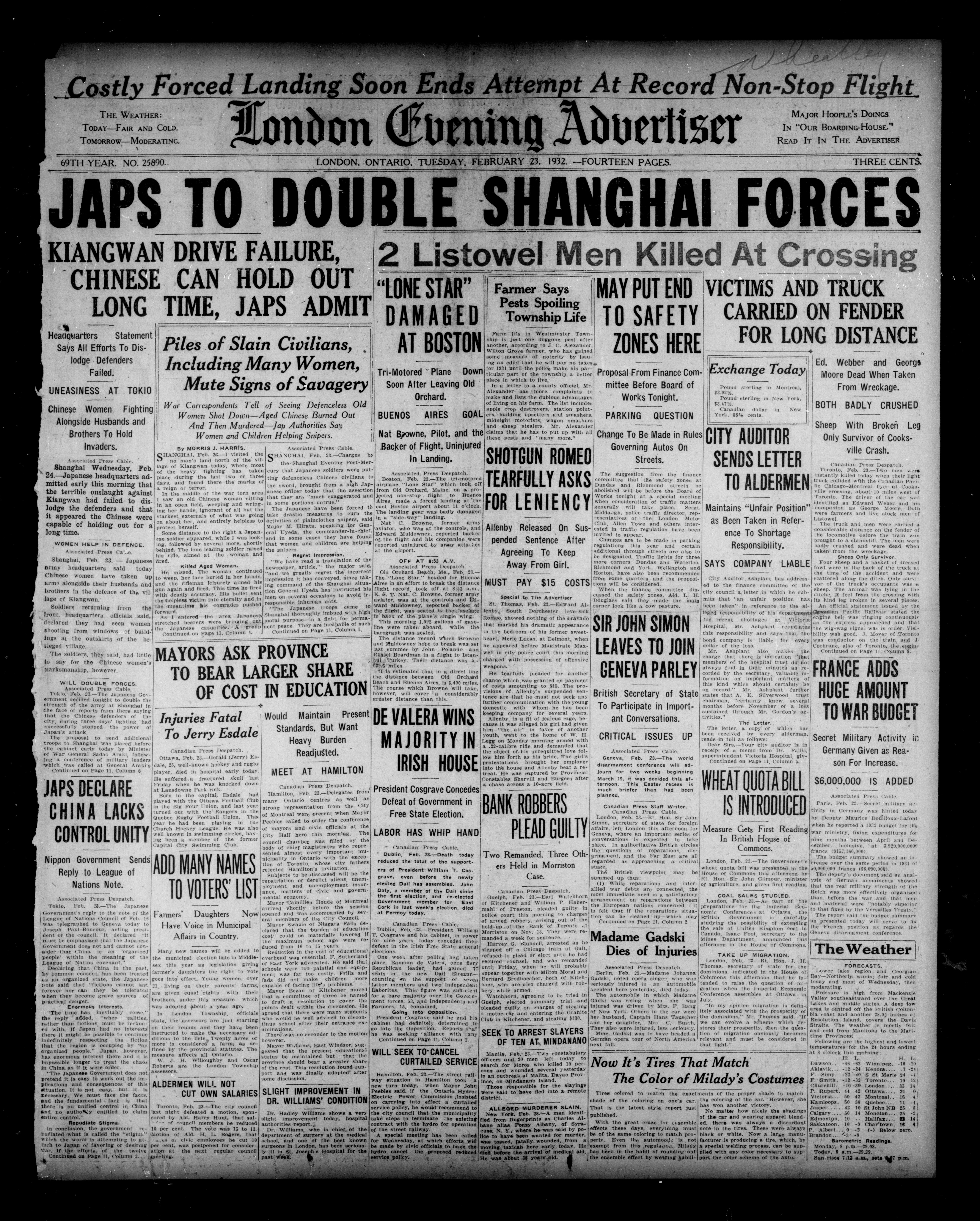 London, Ontario : London Advertiser Company, Limited, [1932]; 14 images, 0 avec recherche en texte intégral