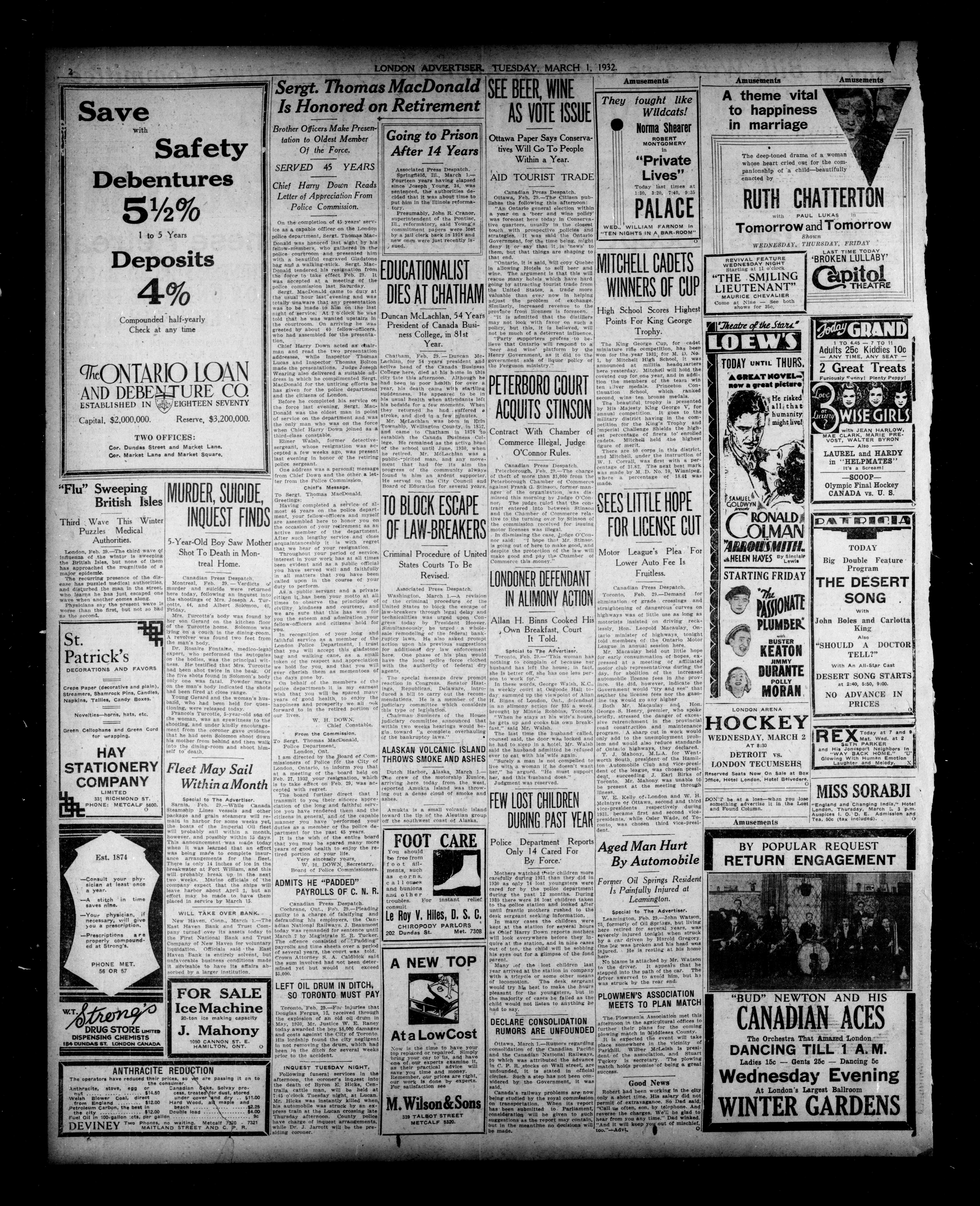 London, Ontario : London Advertiser Company, Limited, [1932]; 16 images, 0 avec recherche en texte intégral