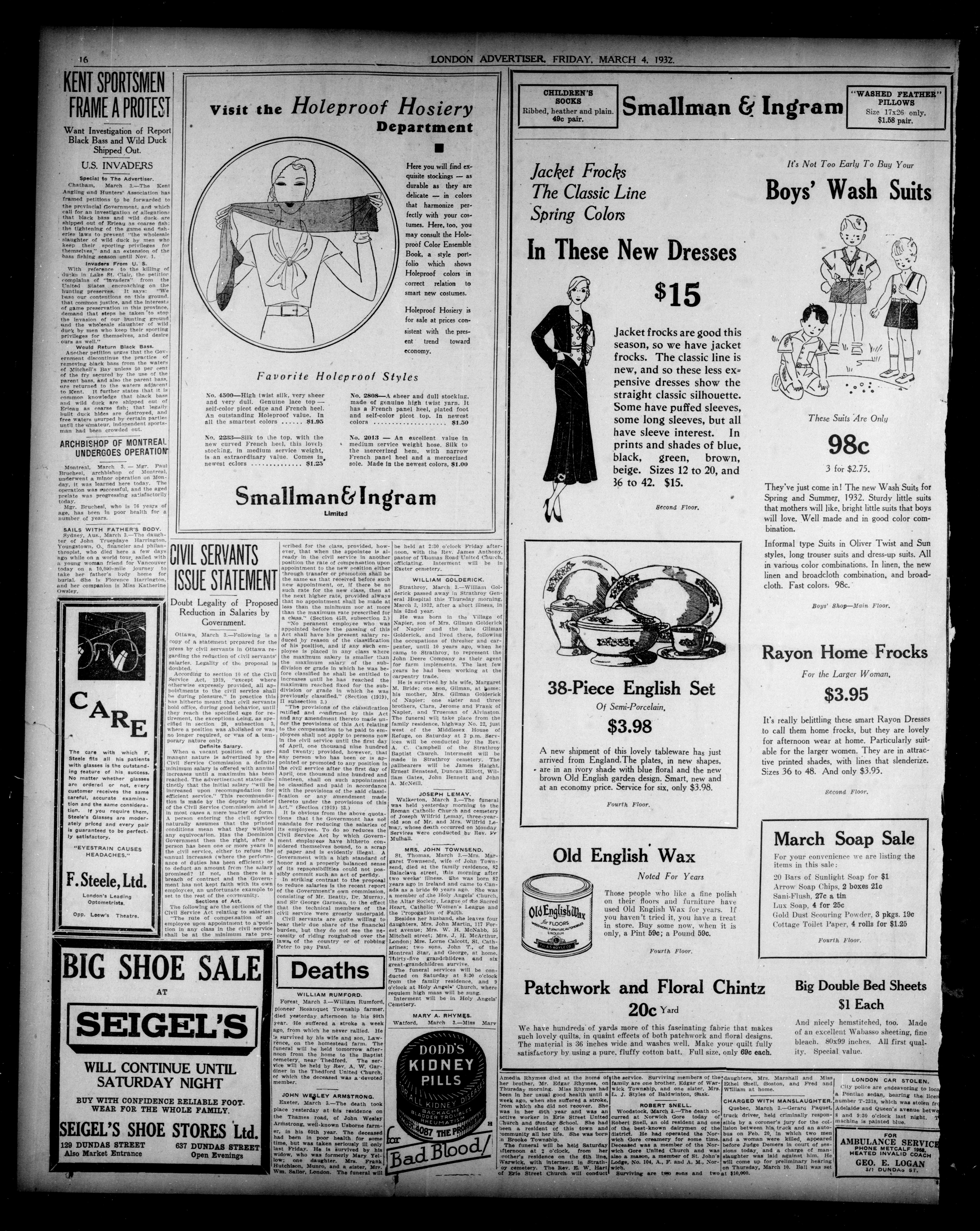 London, Ontario : London Advertiser Company, Limited, [1932]; 16 images, 0 avec recherche en texte intégral