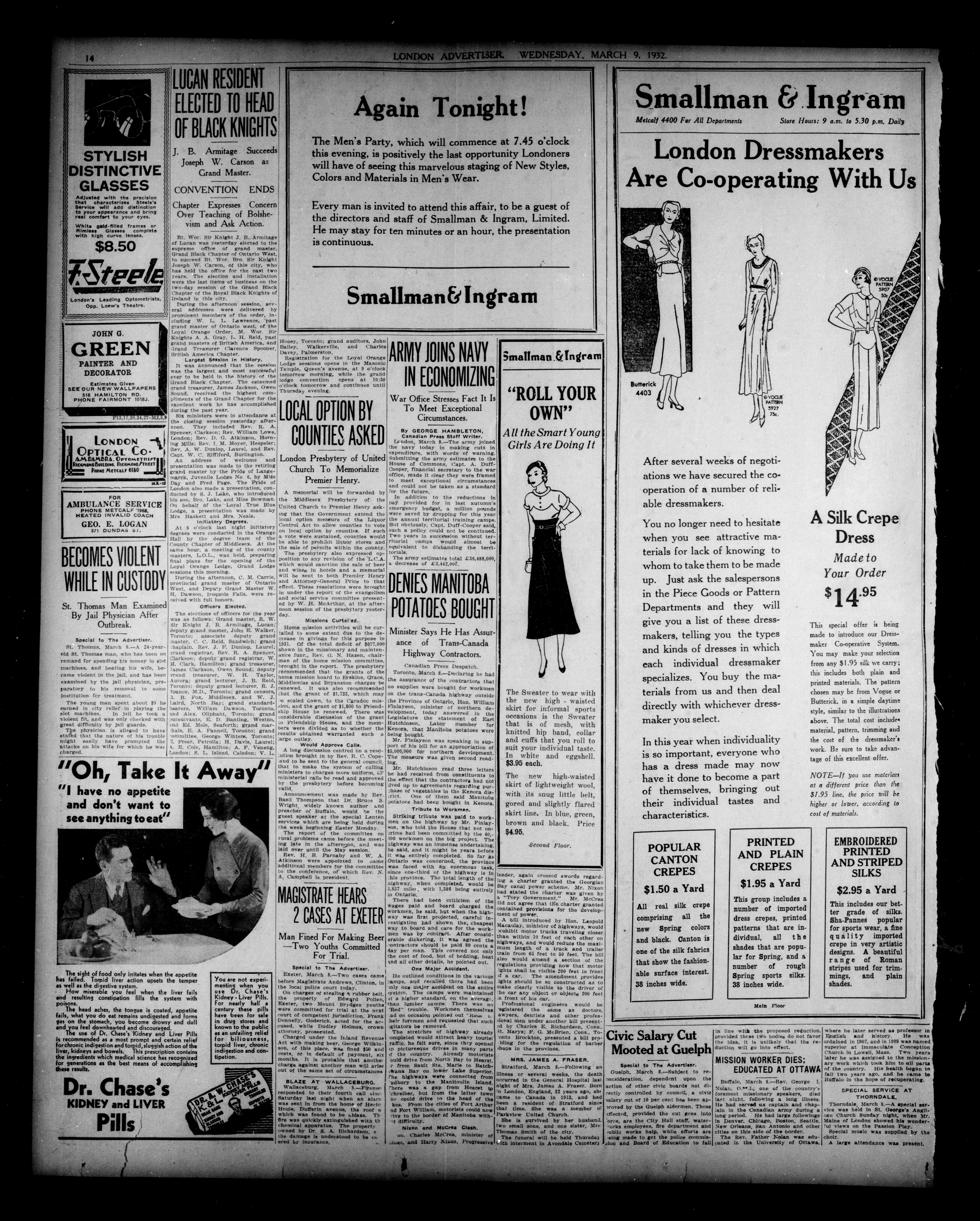 London, Ontario : London Advertiser Company, Limited, [1932]; 14 images, 0 avec recherche en texte intégral