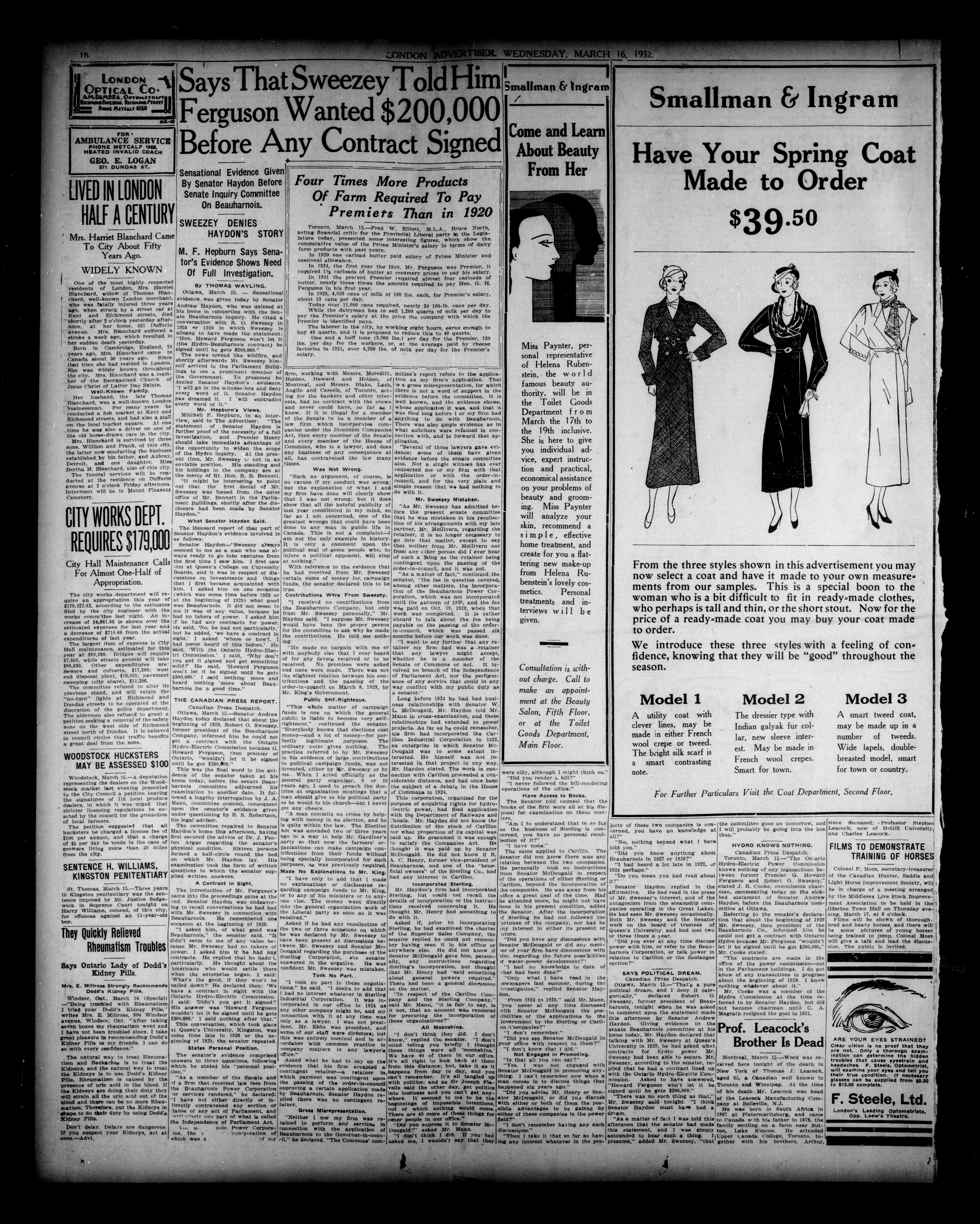 London, Ontario : London Advertiser Company, Limited, [1932]; 16 images, 0 avec recherche en texte intégral