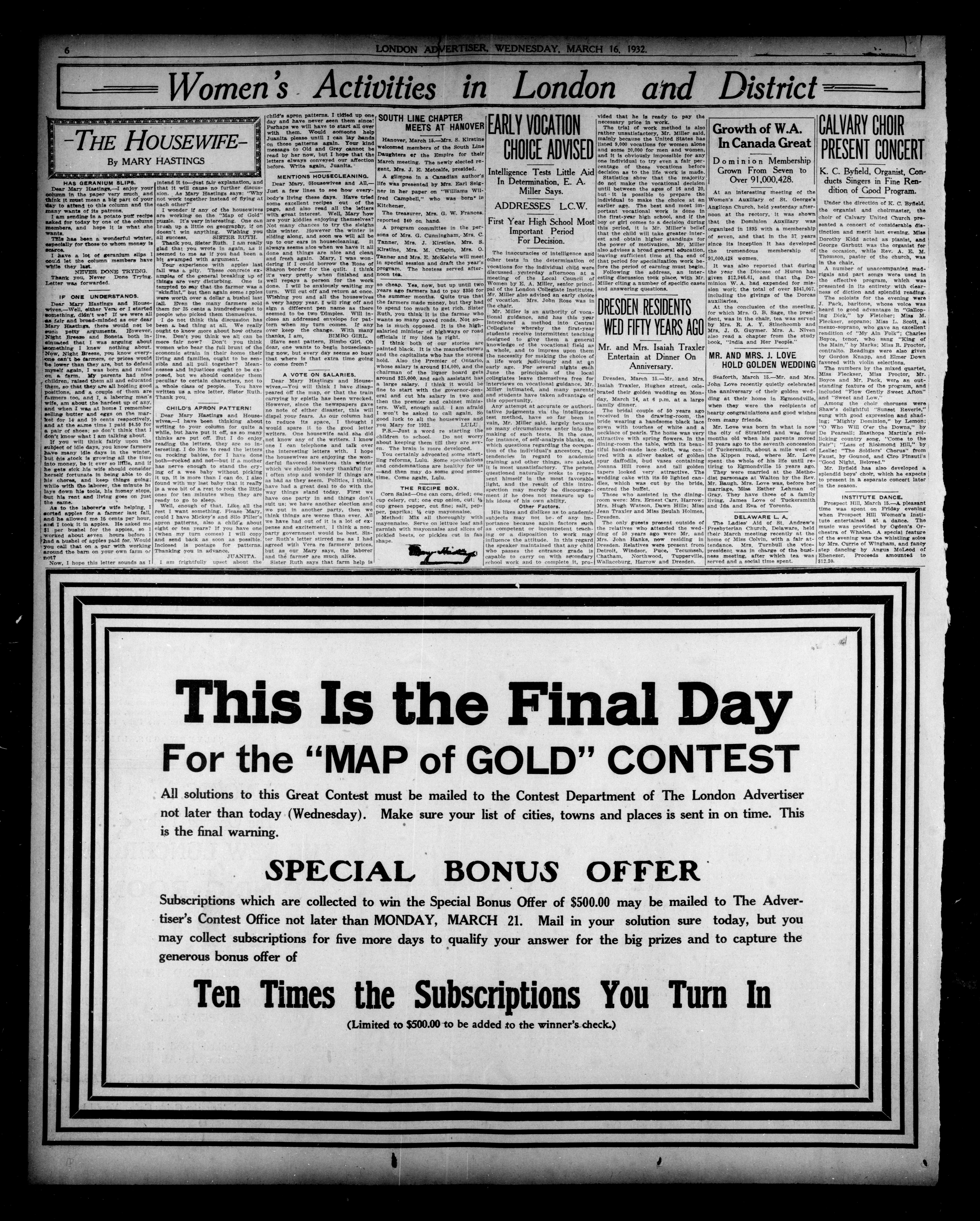 London, Ontario : London Advertiser Company, Limited, [1932]; 16 images, 0 avec recherche en texte intégral