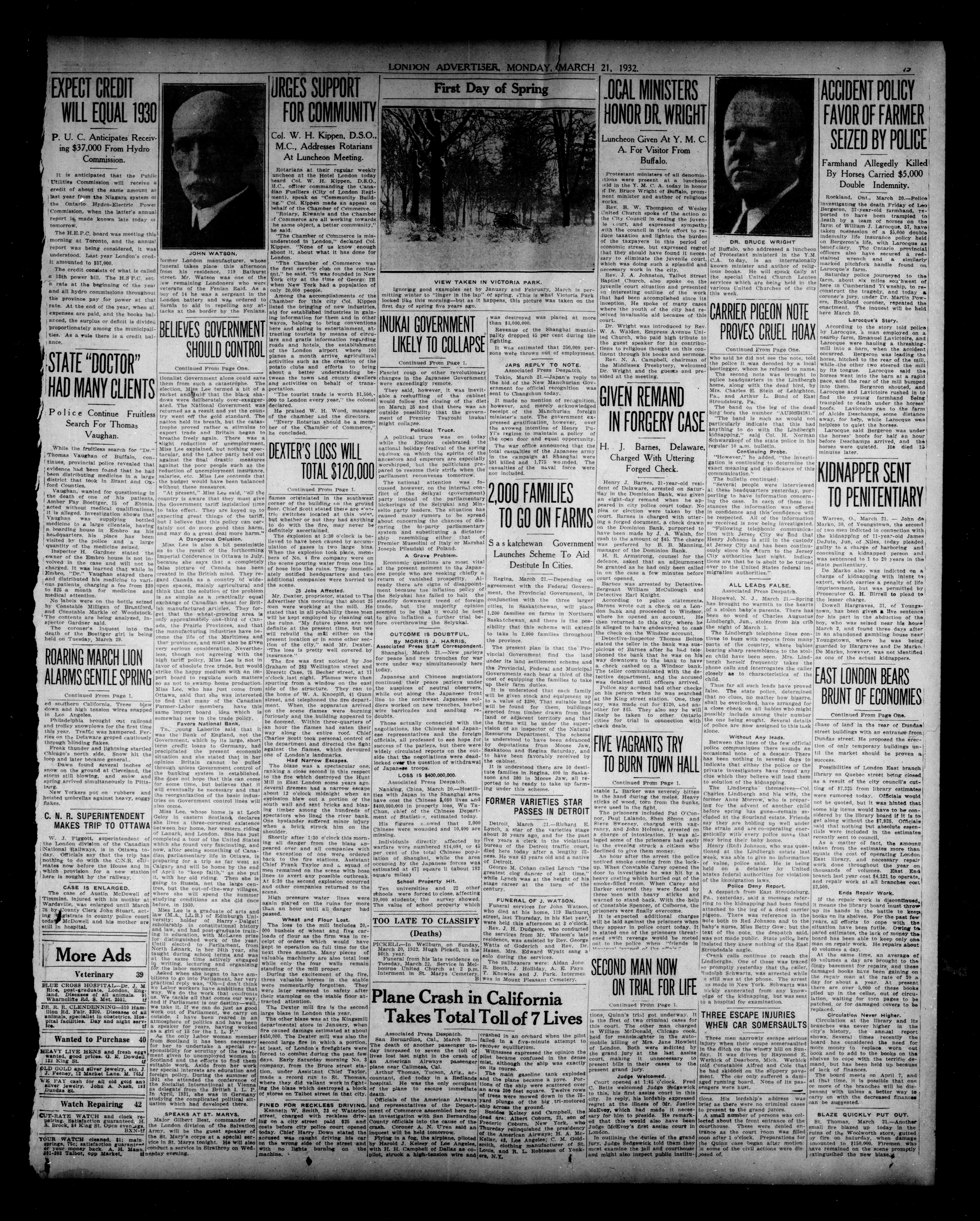 London Evening Advertiser. : London evening advertiser : 69th Year, No. 25912 (March 21, 1932)