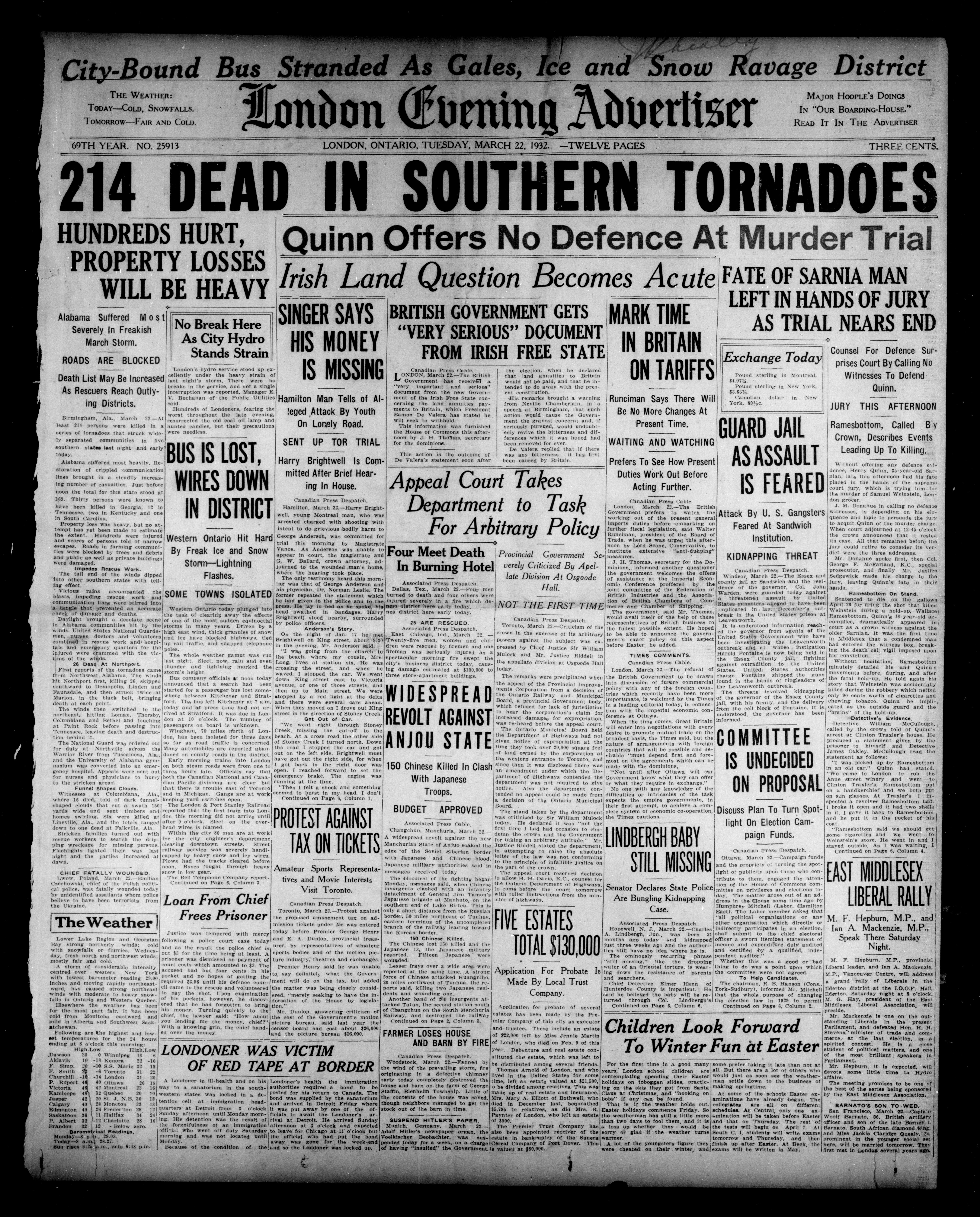 London, Ontario : London Advertiser Company, Limited, [1932]; 12 images, 0 avec recherche en texte intégral