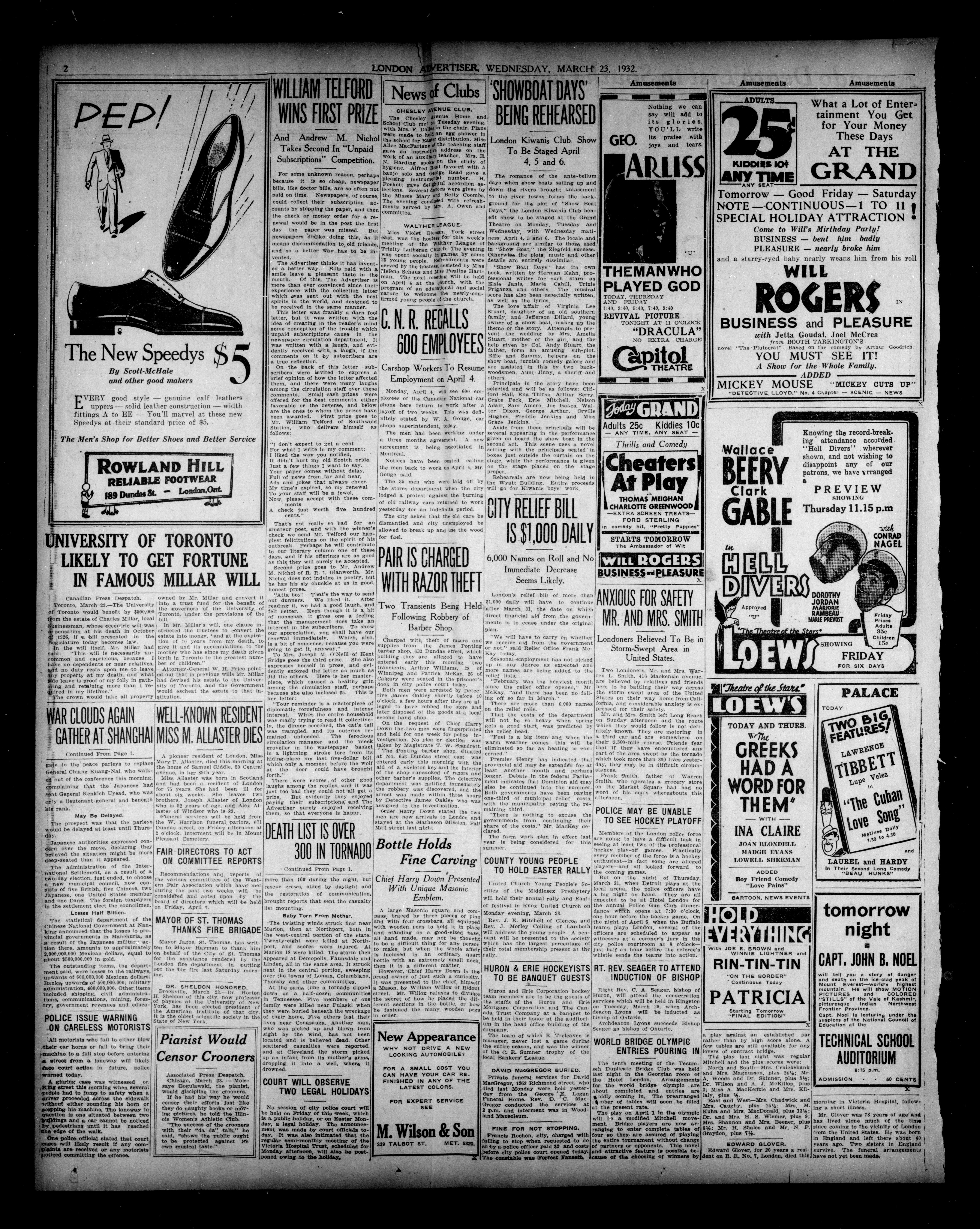 Aide London, Ontario : London Advertiser Company, Limited, [1932]; 14 images, 0 avec recherche en texte intégral