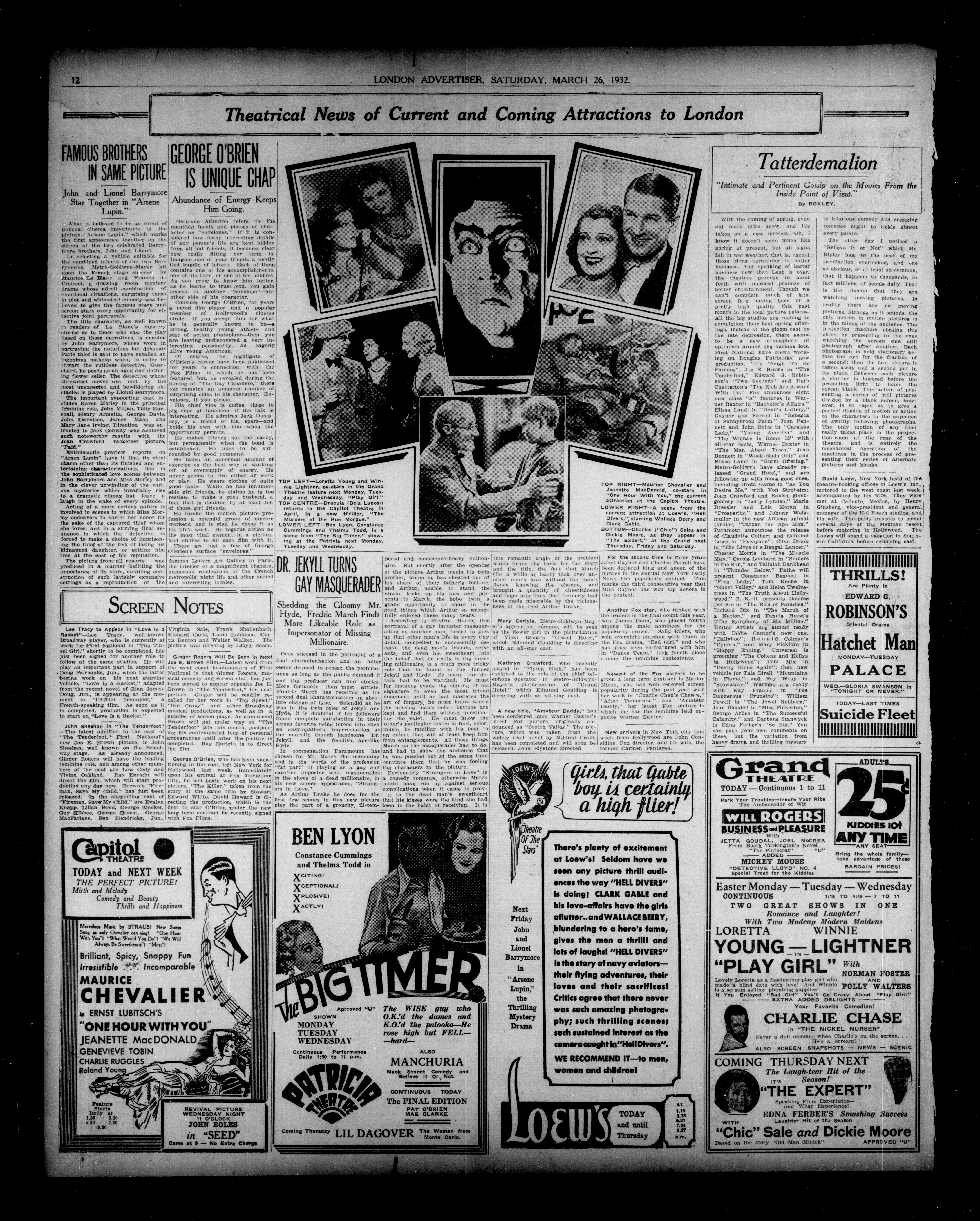 London, Ontario : London Advertiser Company, Limited, [1932]; 18 images, 0 avec recherche en texte intégral