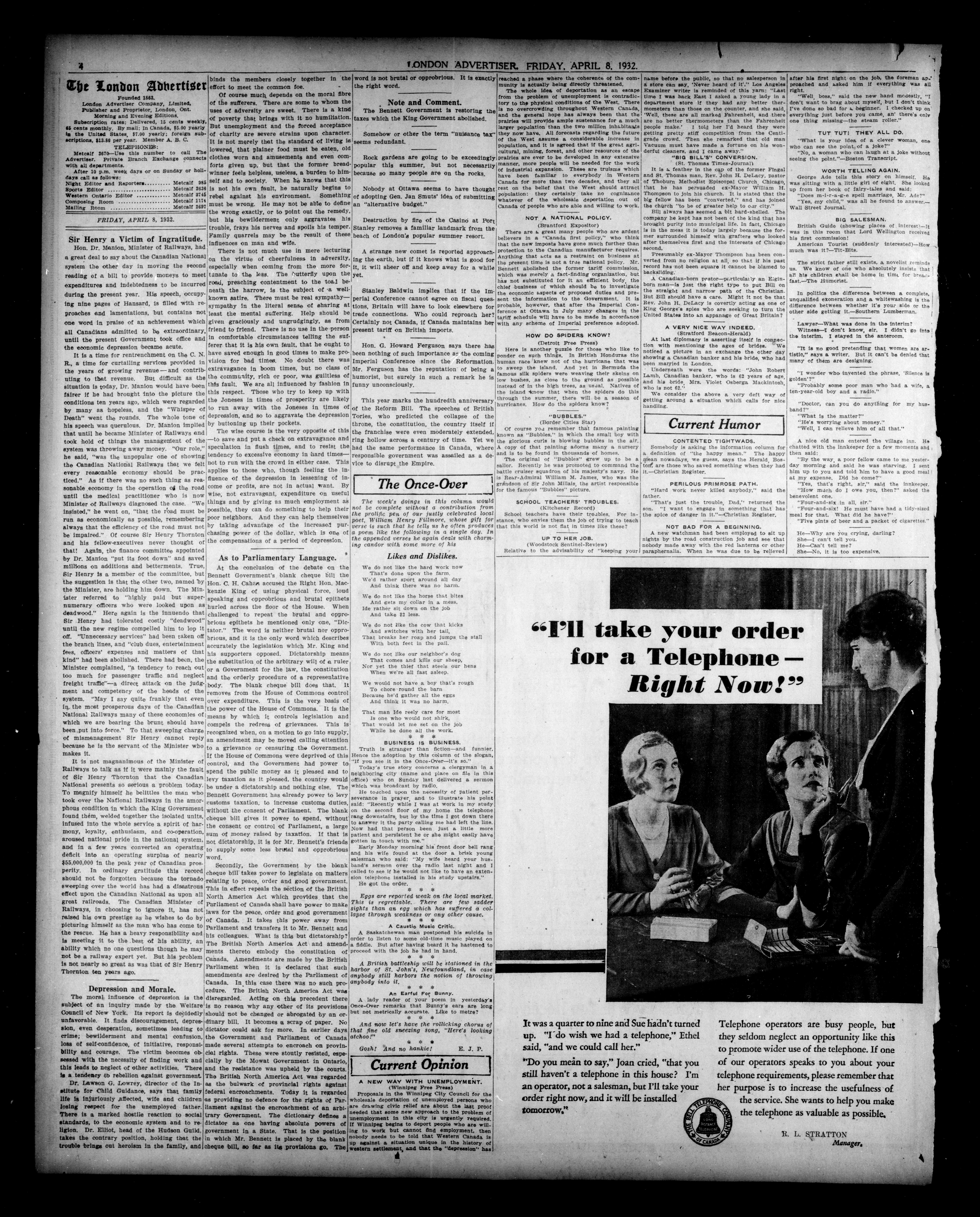 London, Ontario : London Advertiser Company, Limited, [1932]; 16 images, 0 avec recherche en texte intégral