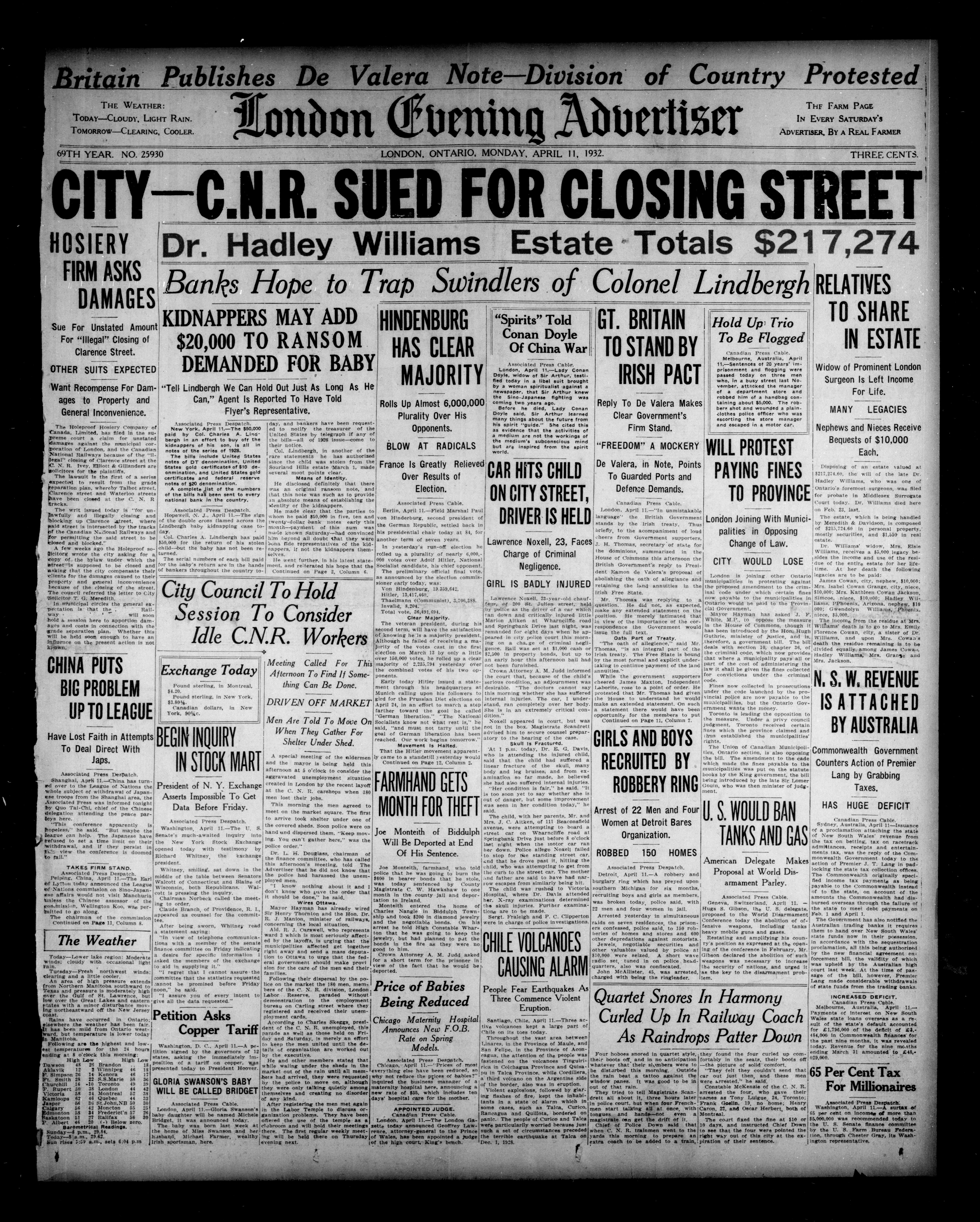 London, Ontario : London Advertiser Company, Limited, [1932]; 12 images, 0 avec recherche en texte intégral