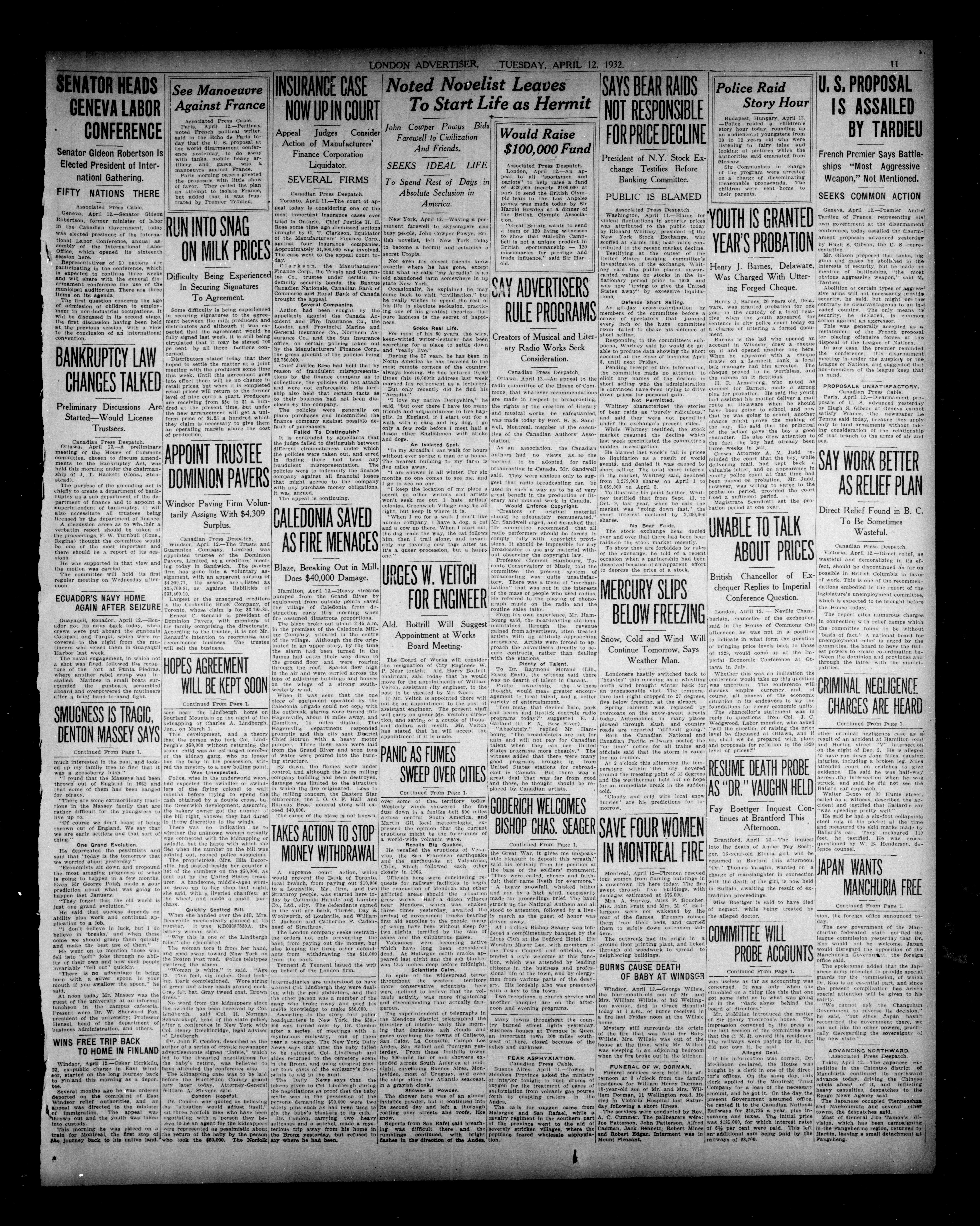 London, Ontario : London Advertiser Company, Limited, [1932]; 14 images, 0 with full-text search