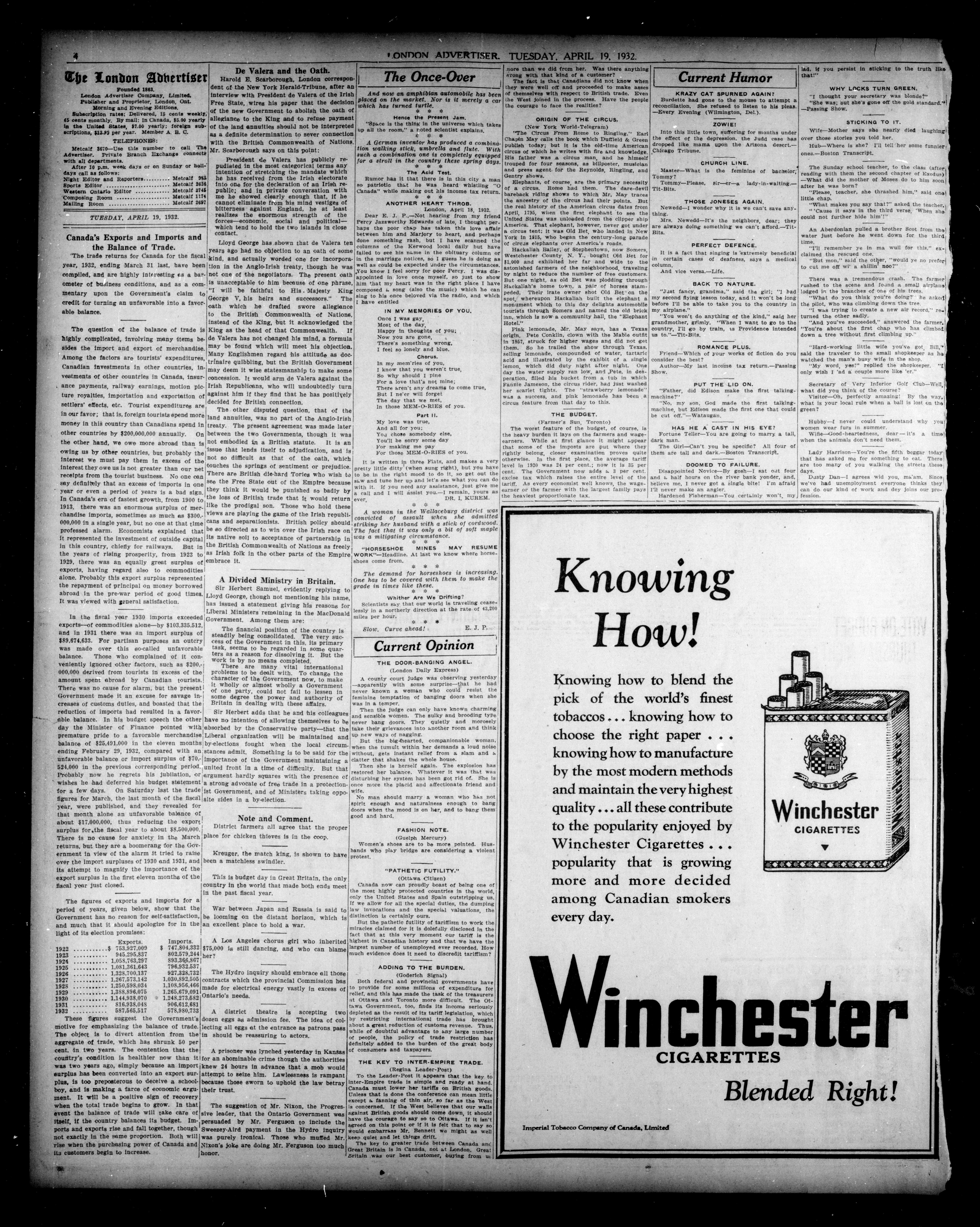 London, Ontario : London Advertiser Company, Limited, [1932]; 14 images, 0 avec recherche en texte intégral