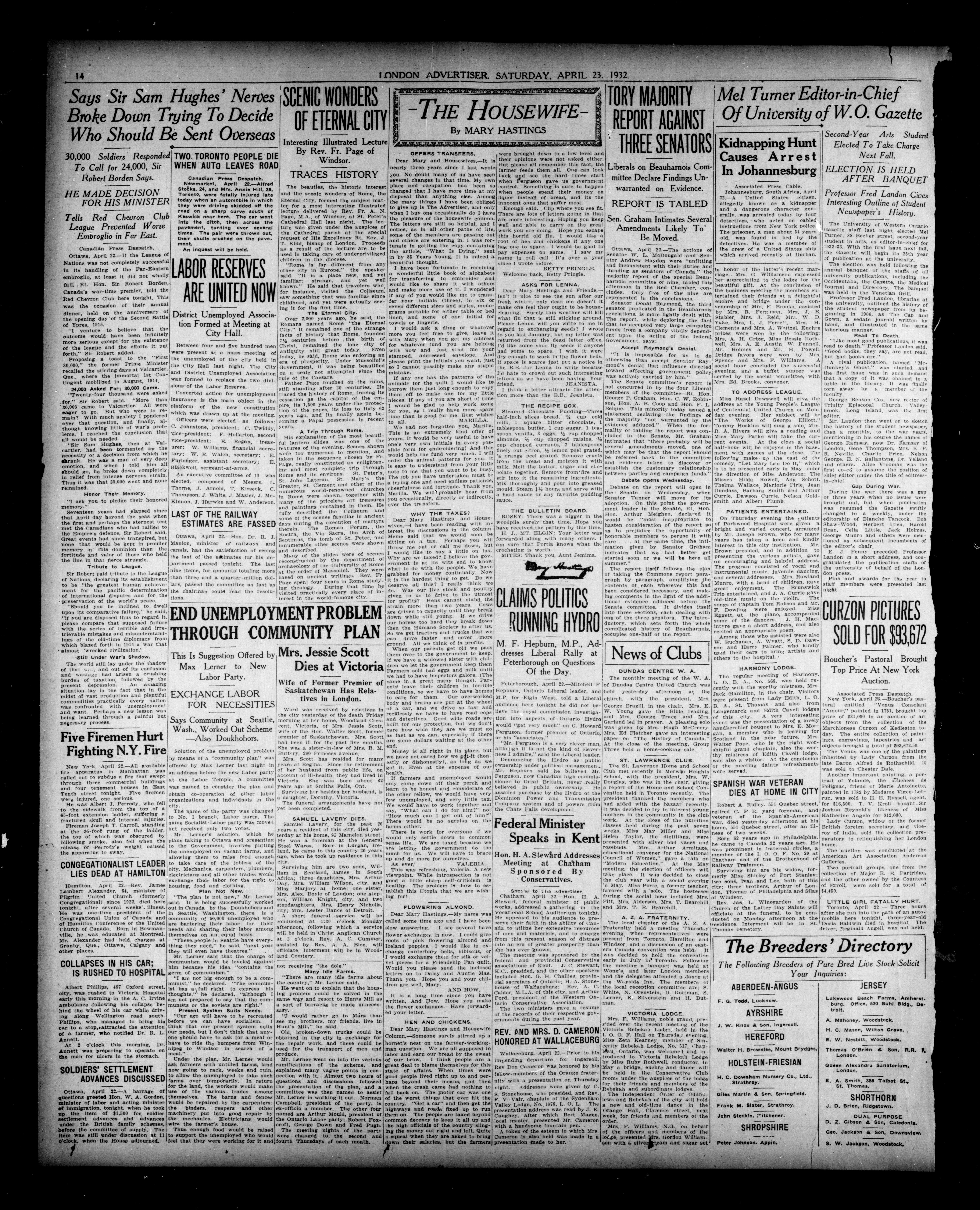 London, Ontario : London Advertiser Company, Limited, [1932]; 18 images, 0 avec recherche en texte intégral