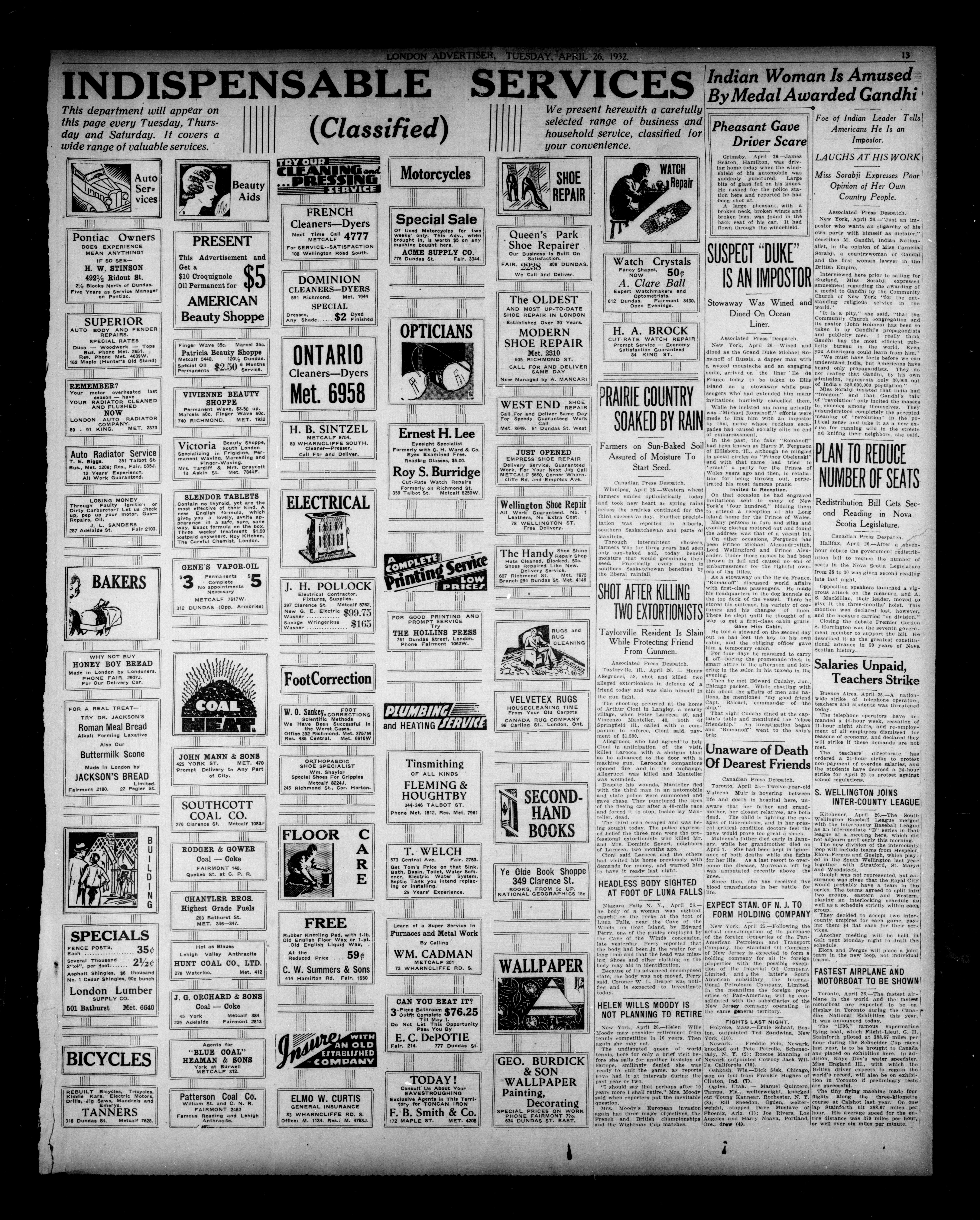 London, Ontario : London Advertiser Company, Limited, [1932]; 14 images, 0 avec recherche en texte intégral