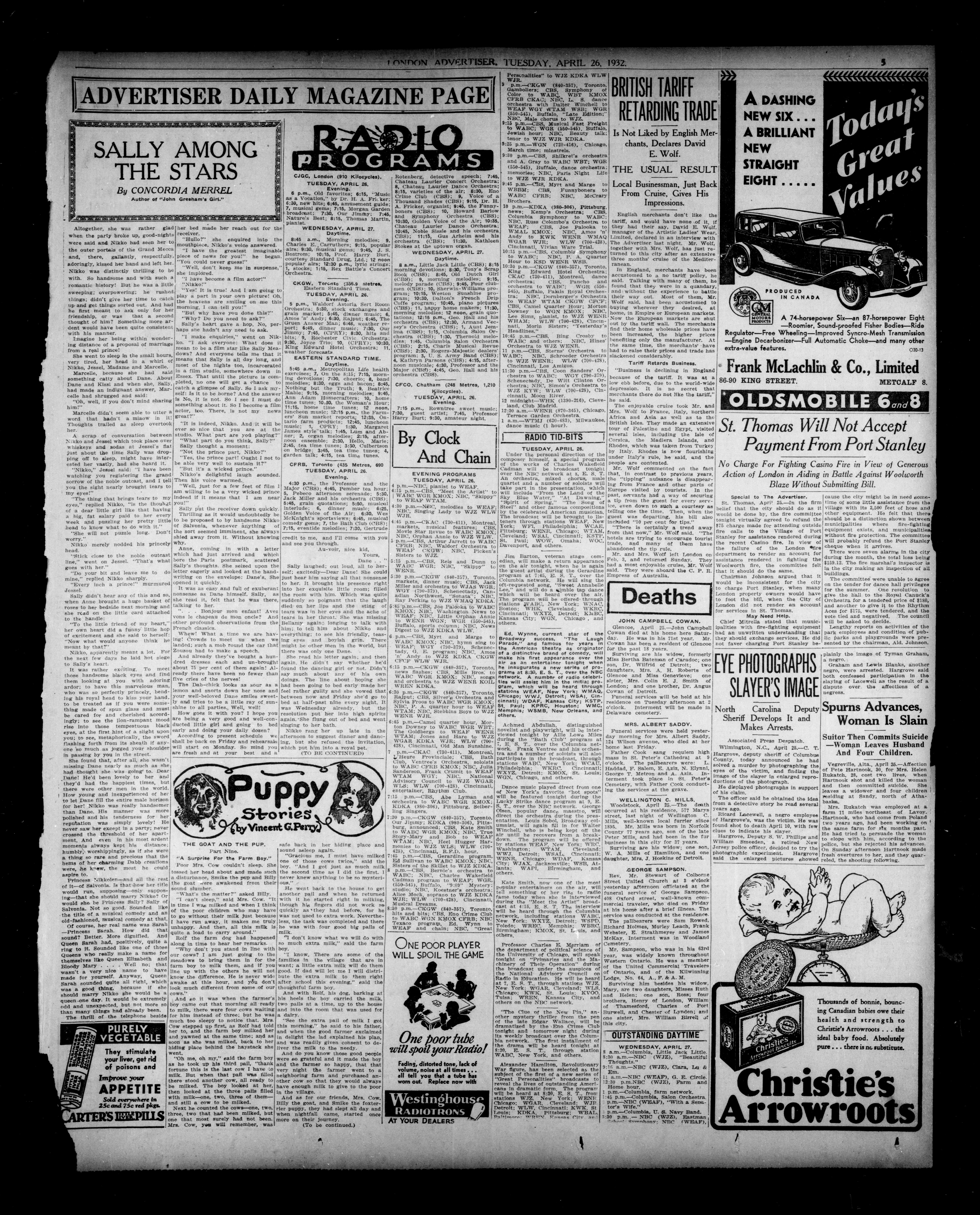 London, Ontario : London Advertiser Company, Limited, [1932]; 14 images, 0 avec recherche en texte intégral
