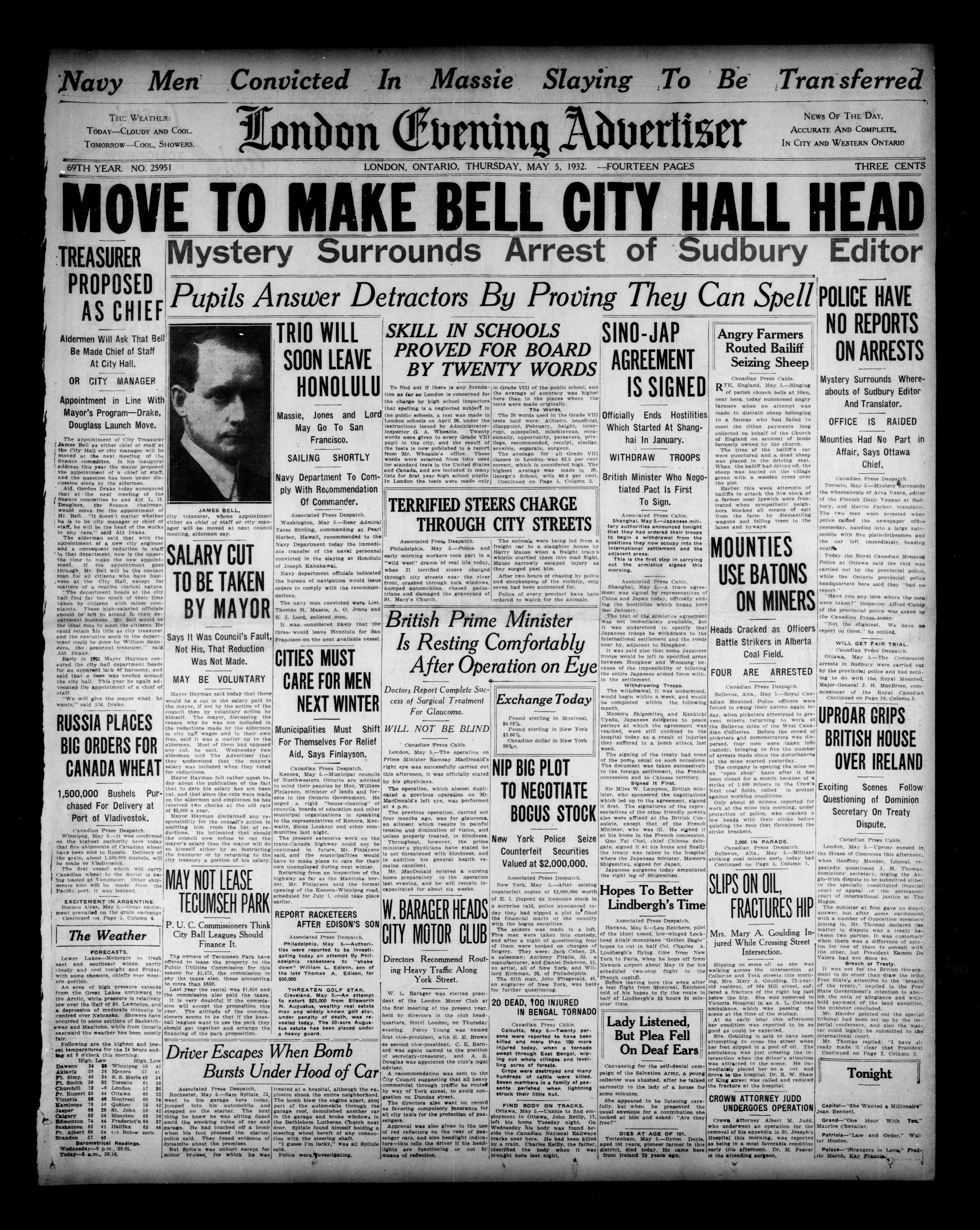 London, Ontario : London Advertiser Company, Limited, [1932]; 14 images, 0 avec recherche en texte intégral
