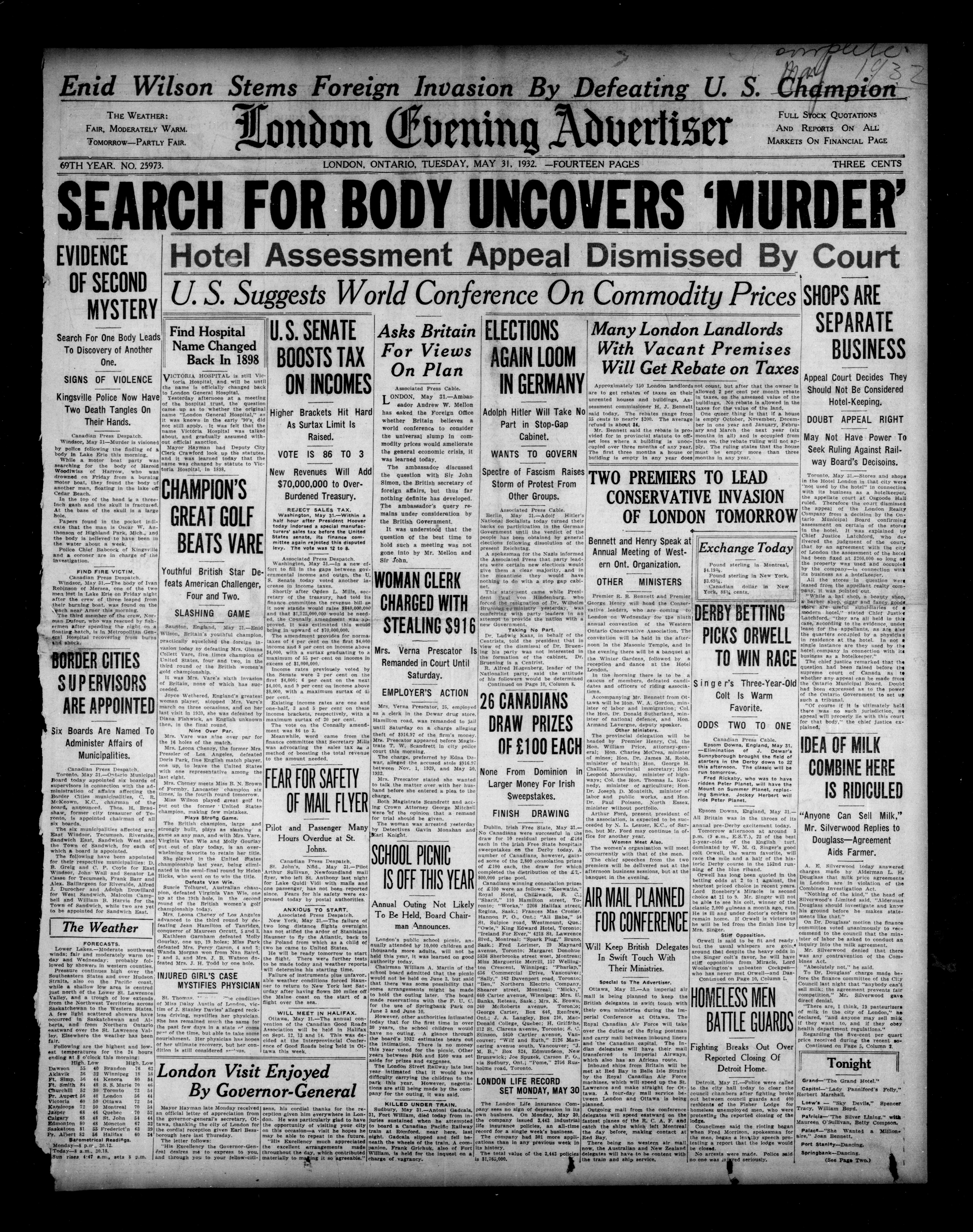 London, Ontario : London Advertiser Company, Limited, [1932]; 14 images, 0 avec recherche en texte intégral