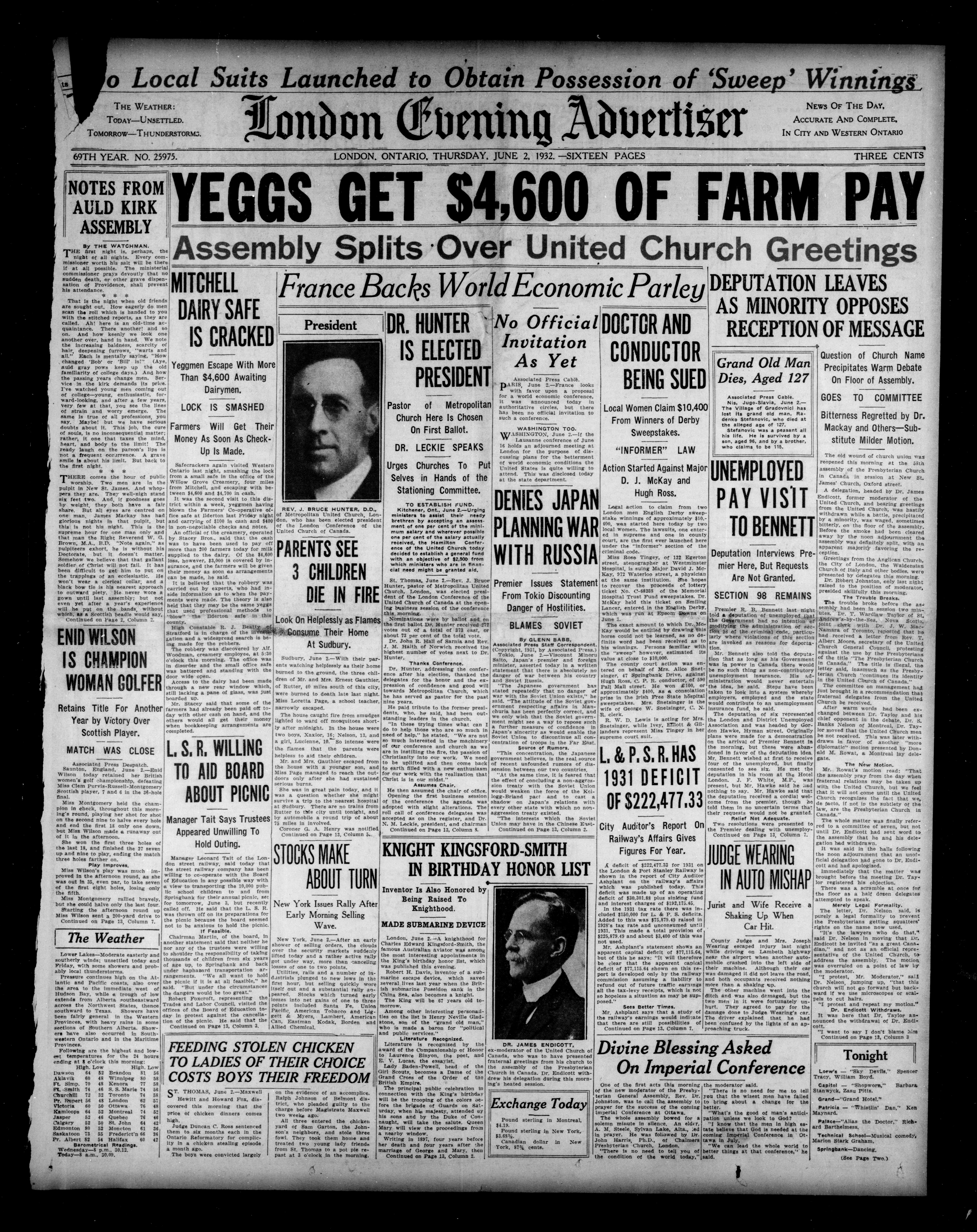 London, Ontario : London Advertiser Company, Limited, [1932]; 16 images, 0 avec recherche en texte intégral