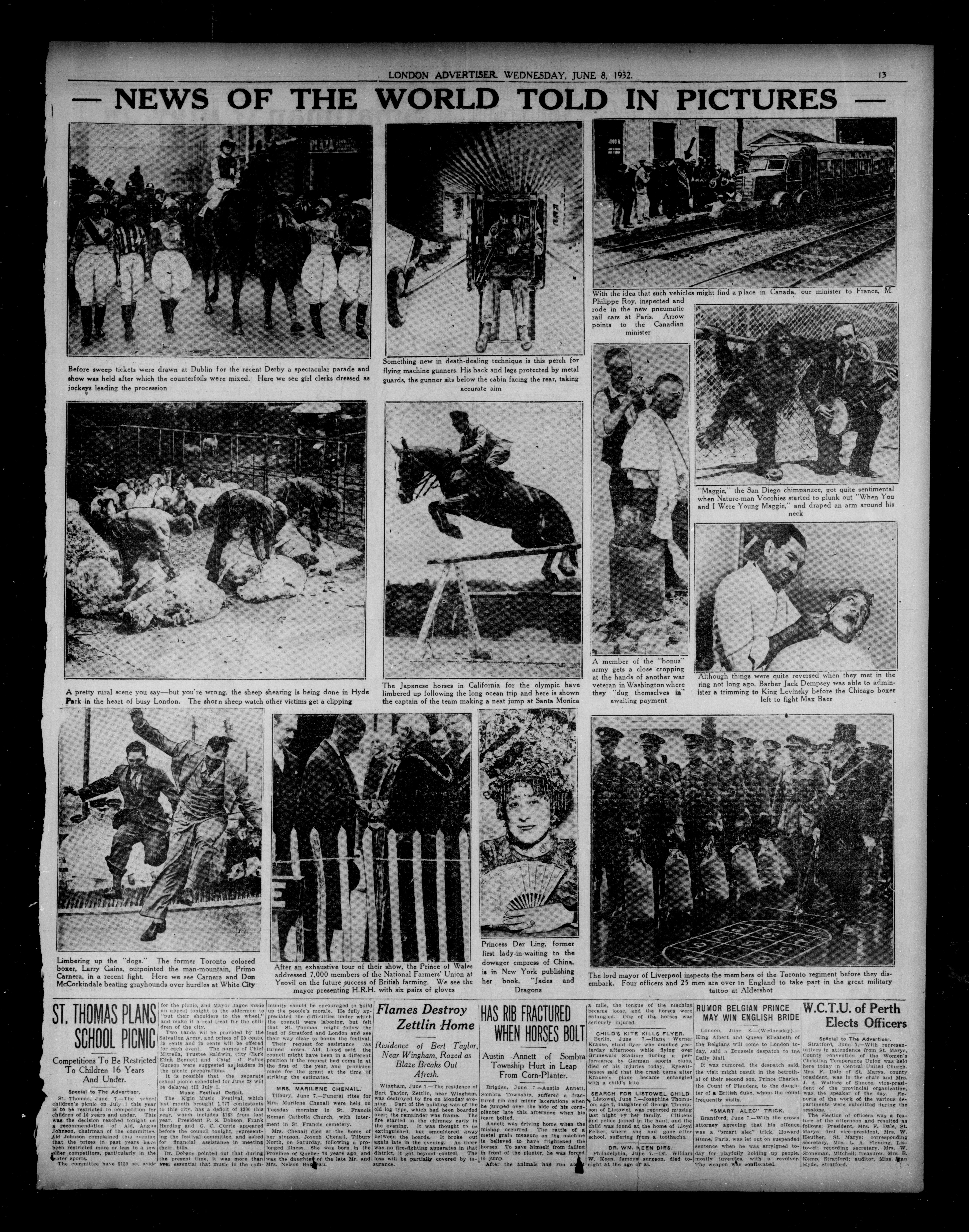 London, Ontario : London Advertiser Company, Limited, [1932]; 14 images, 0 avec recherche en texte intégral
