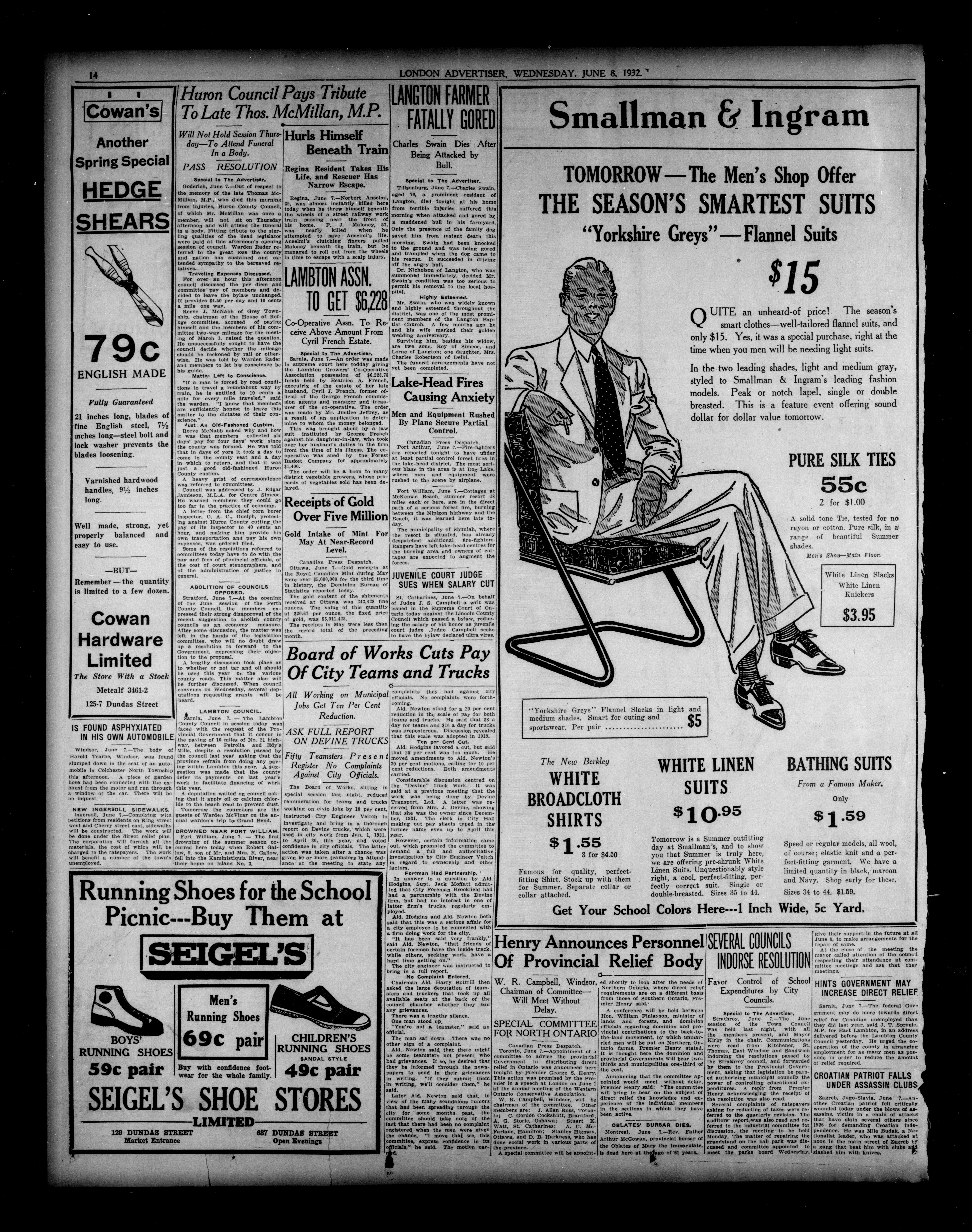 London, Ontario : London Advertiser Company, Limited, [1932]; 14 images, 0 avec recherche en texte intégral