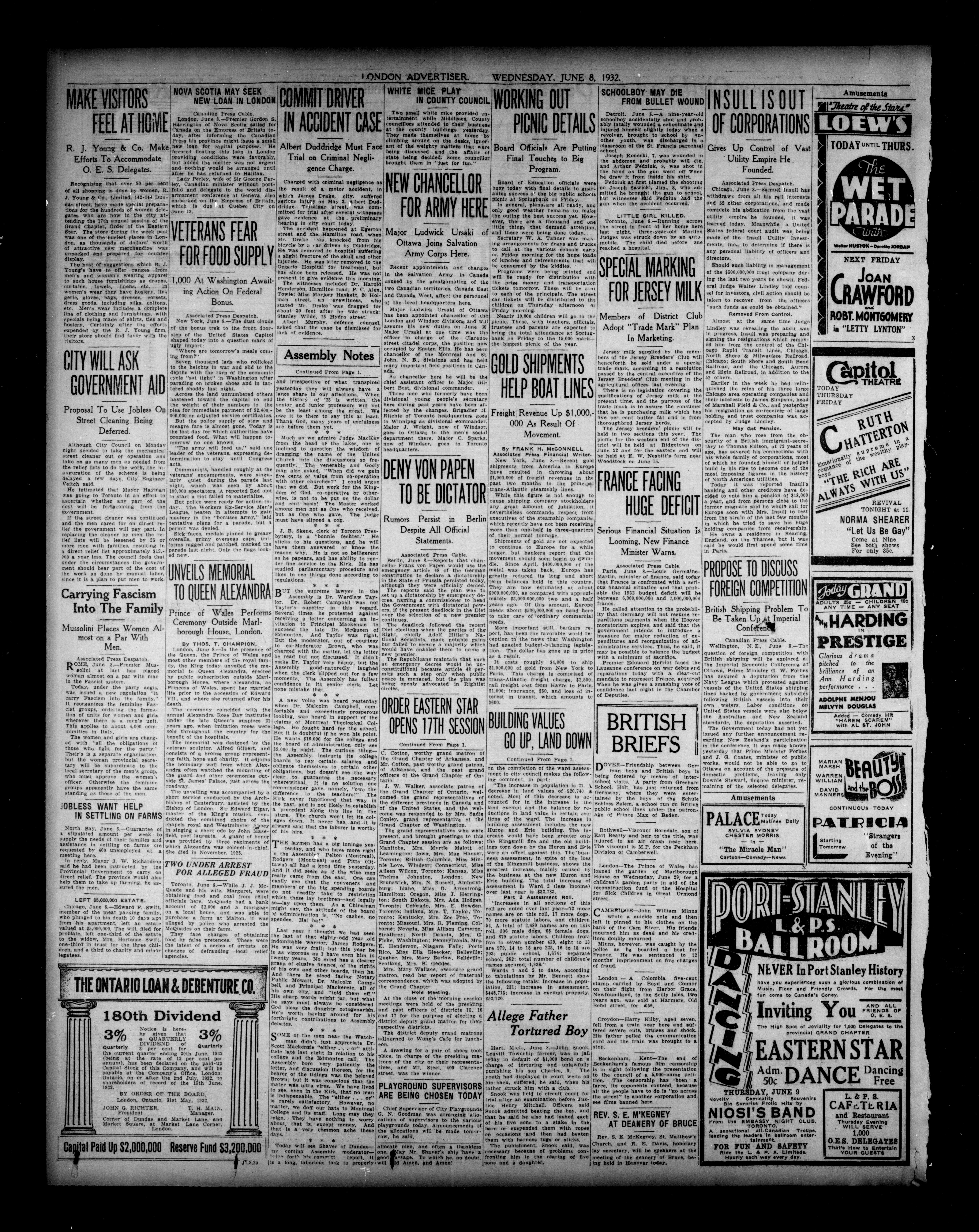 London, Ontario : London Advertiser Company, Limited, [1932]; 14 images, 0 avec recherche en texte intégral