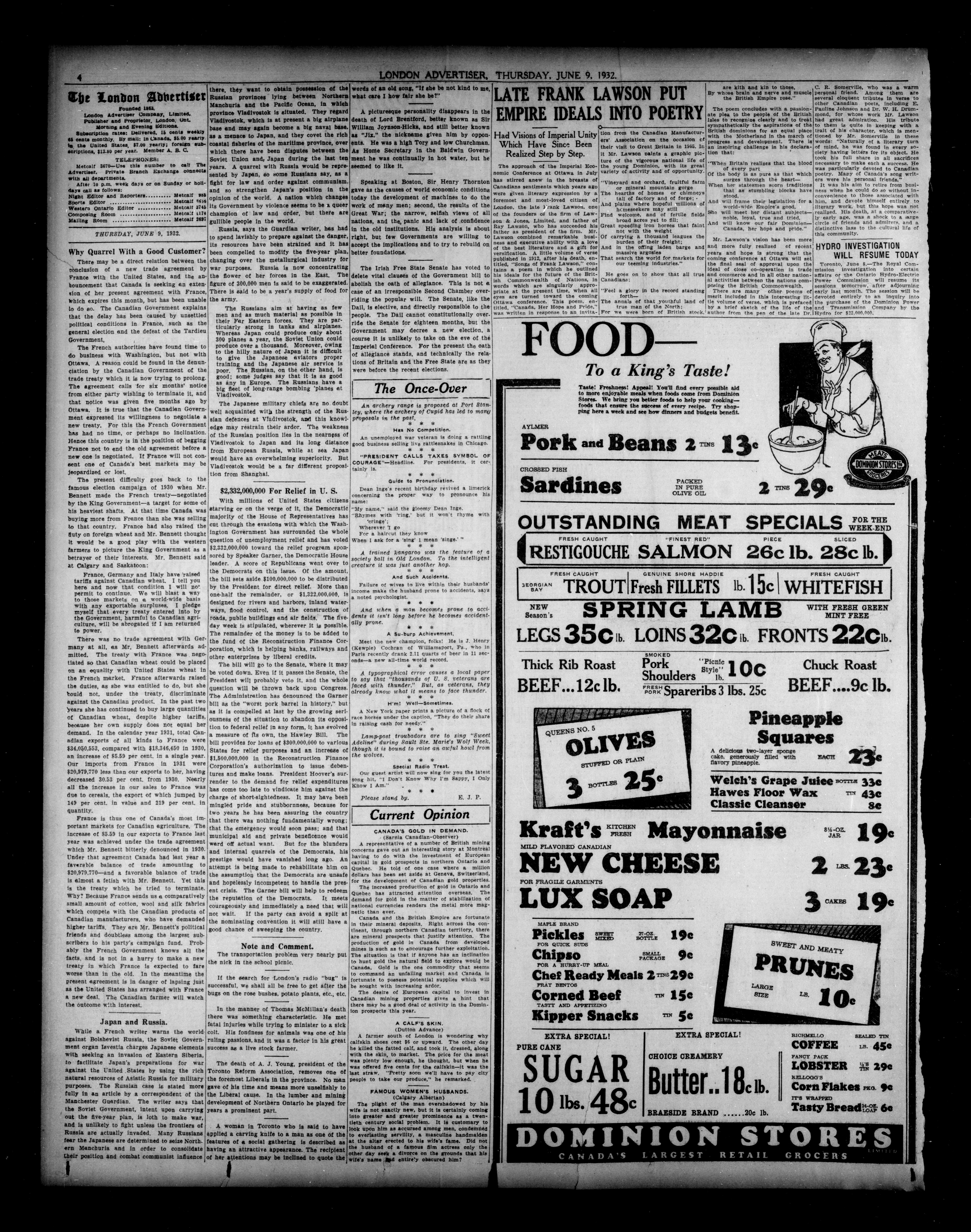 London, Ontario : London Advertiser Company, Limited, [1932]; 16 images, 0 avec recherche en texte intégral