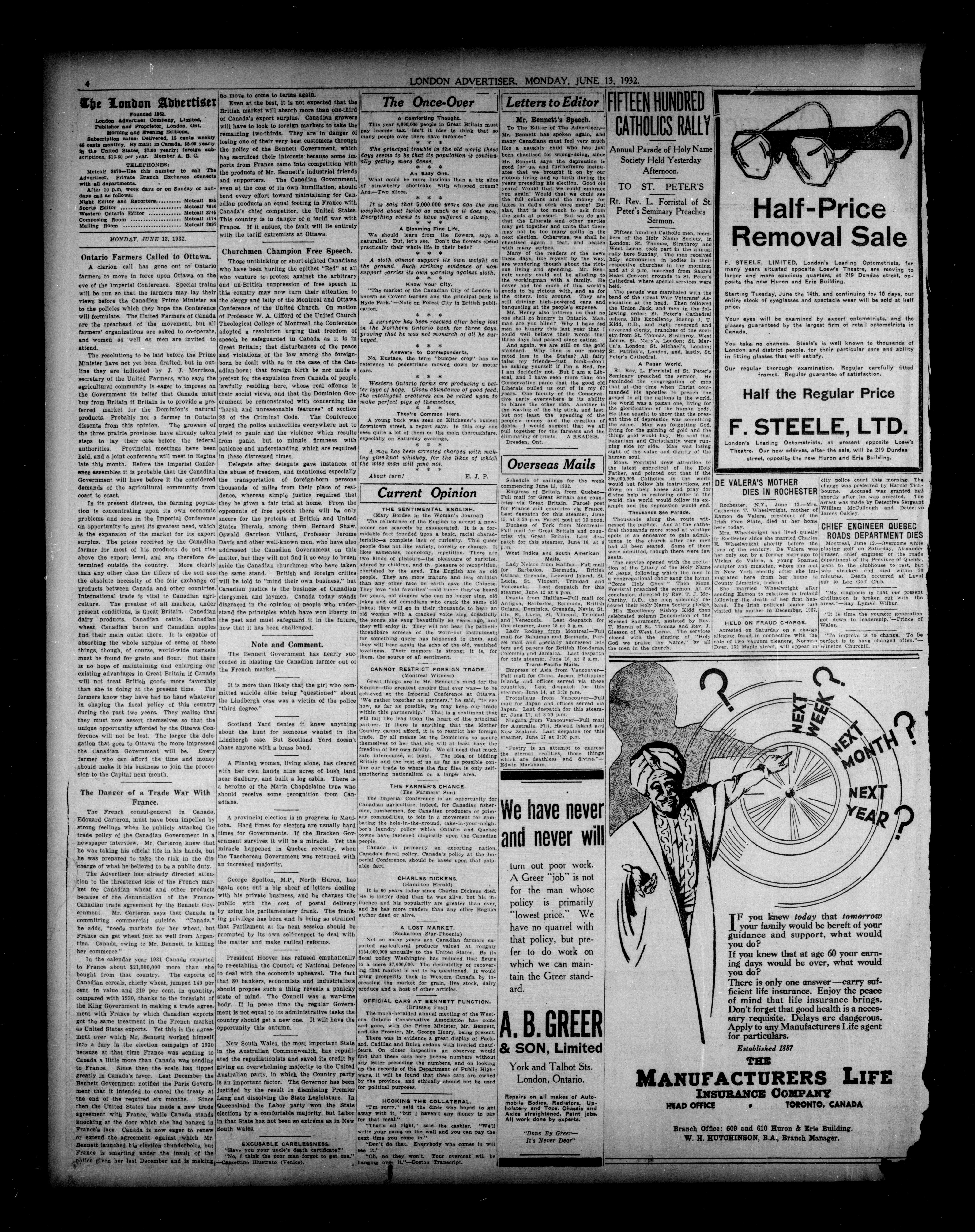 London, Ontario : London Advertiser Company, Limited, [1932]; 12 images, 0 avec recherche en texte intégral