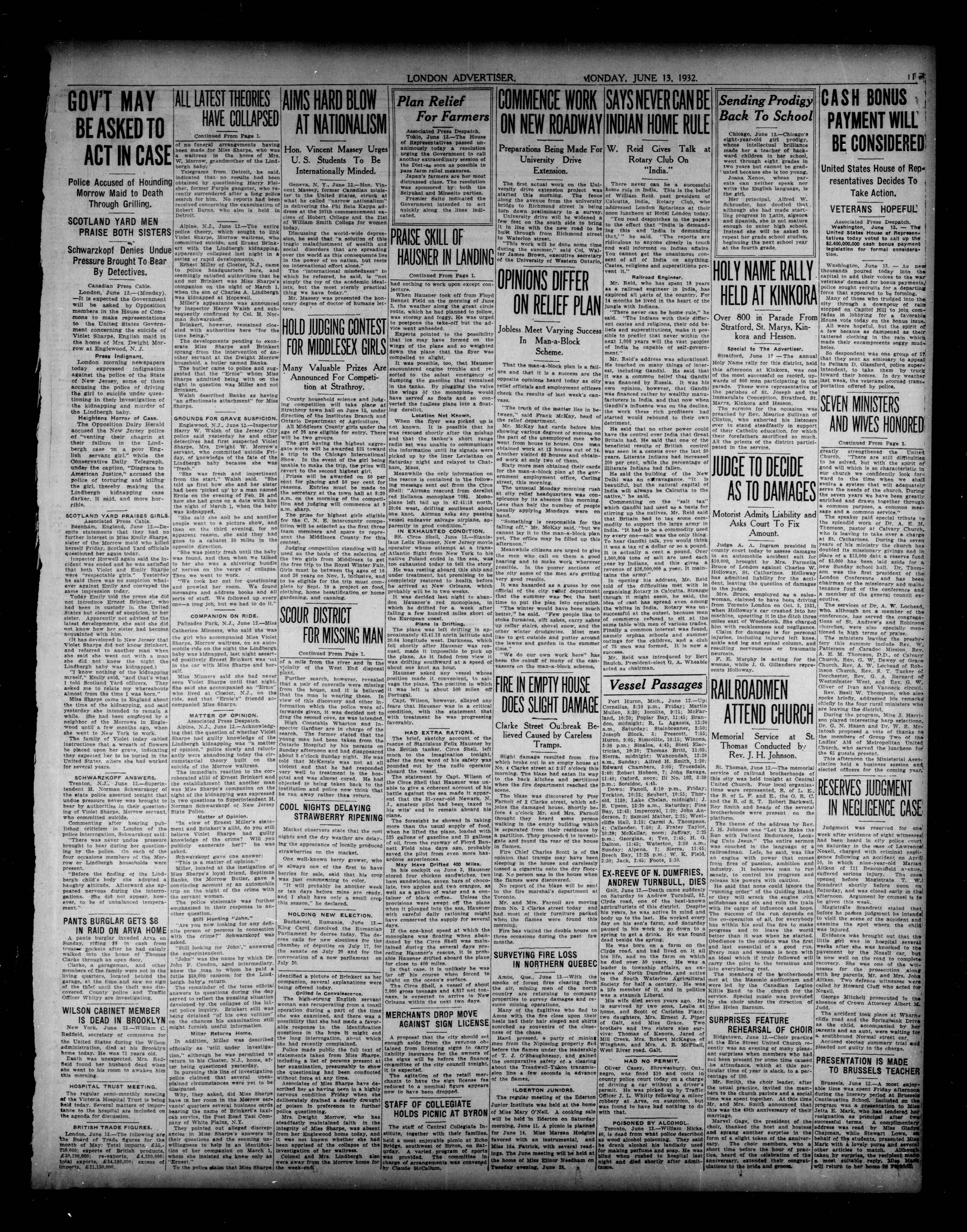 London, Ontario : London Advertiser Company, Limited, [1932]; 12 images, 0 avec recherche en texte intégral