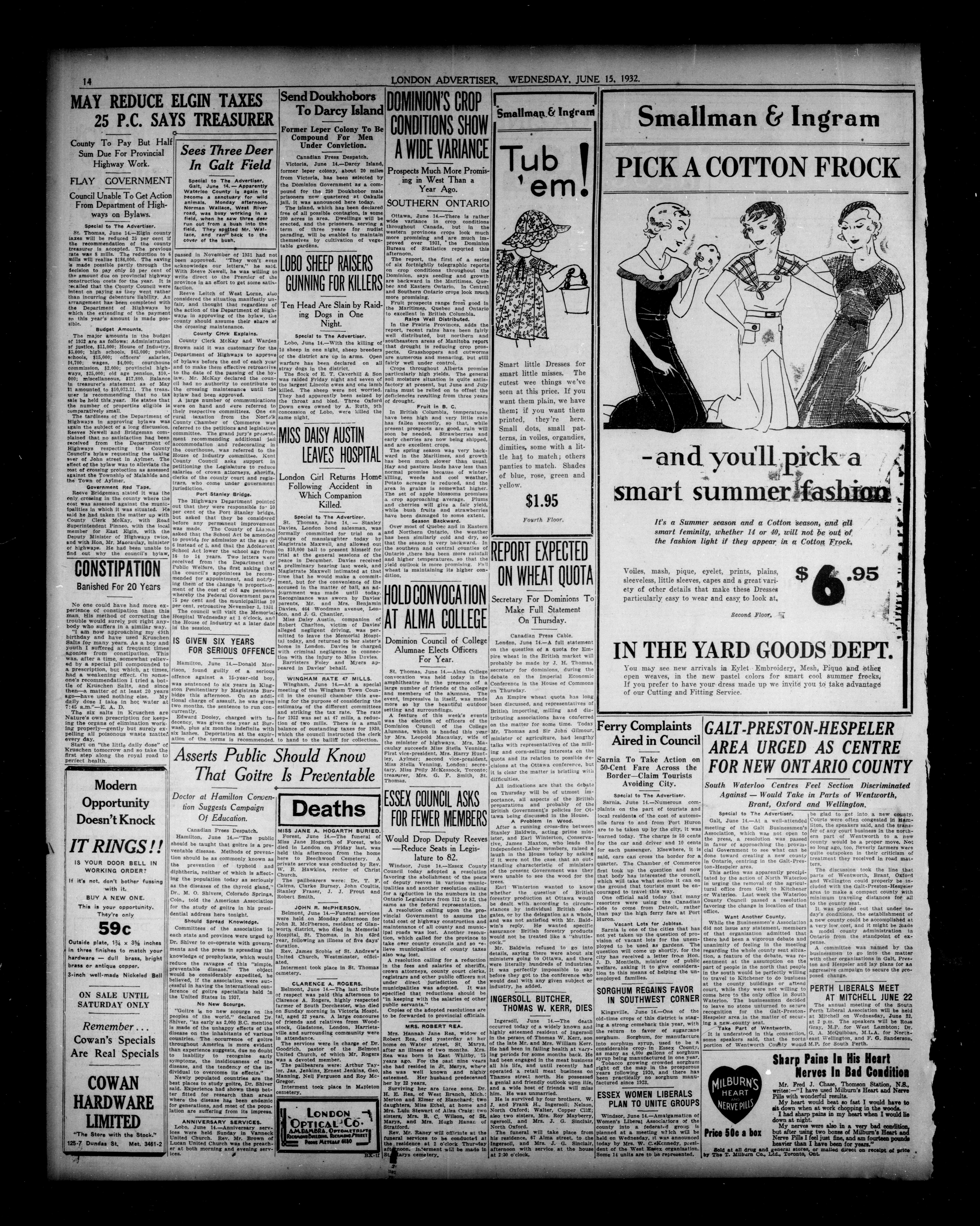 Aide London, Ontario : London Advertiser Company, Limited, [1932]; 14 images, 0 avec recherche en texte intégral