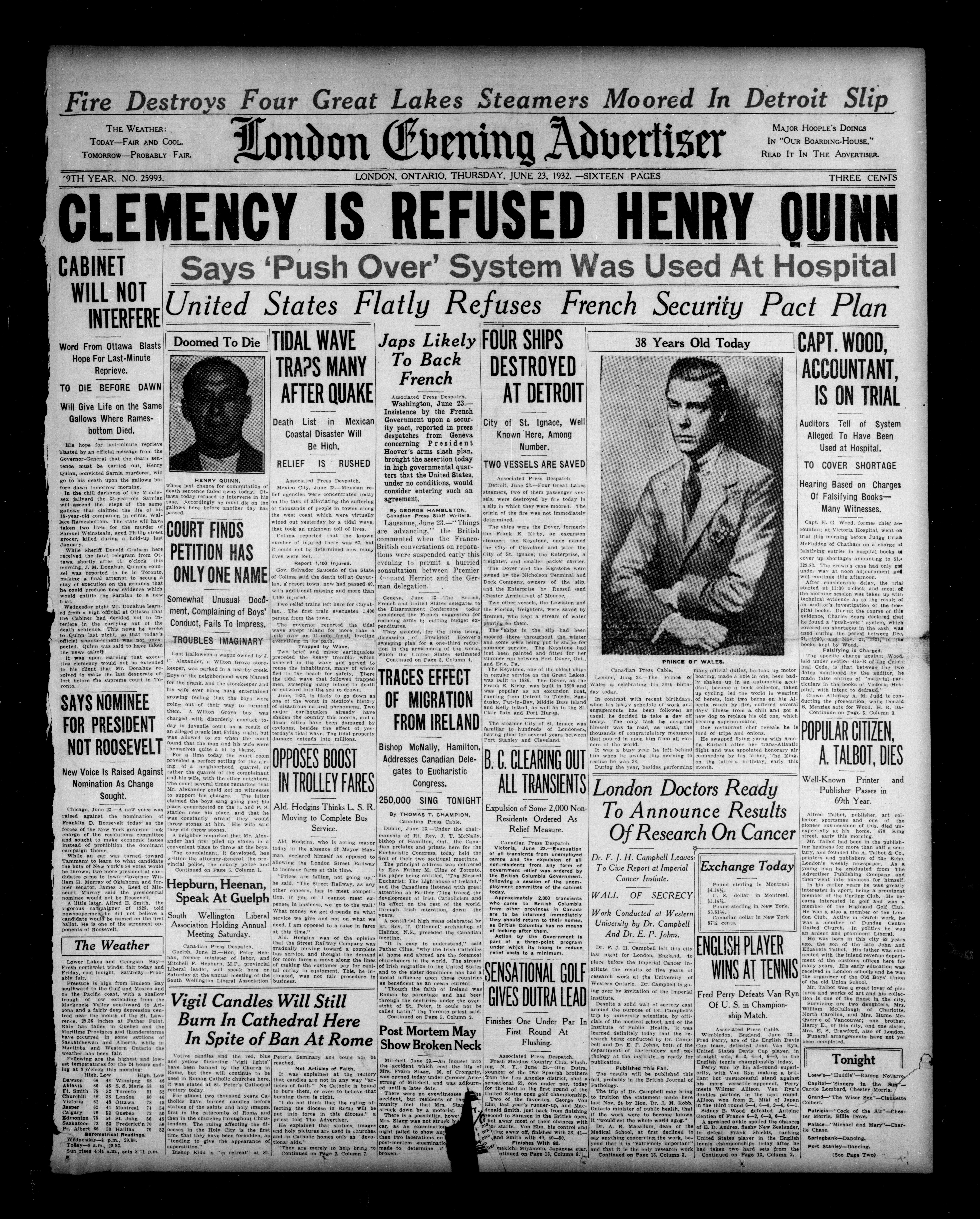London, Ontario : London Advertiser Company, Limited, [1932]; 16 images, 0 avec recherche en texte intégral