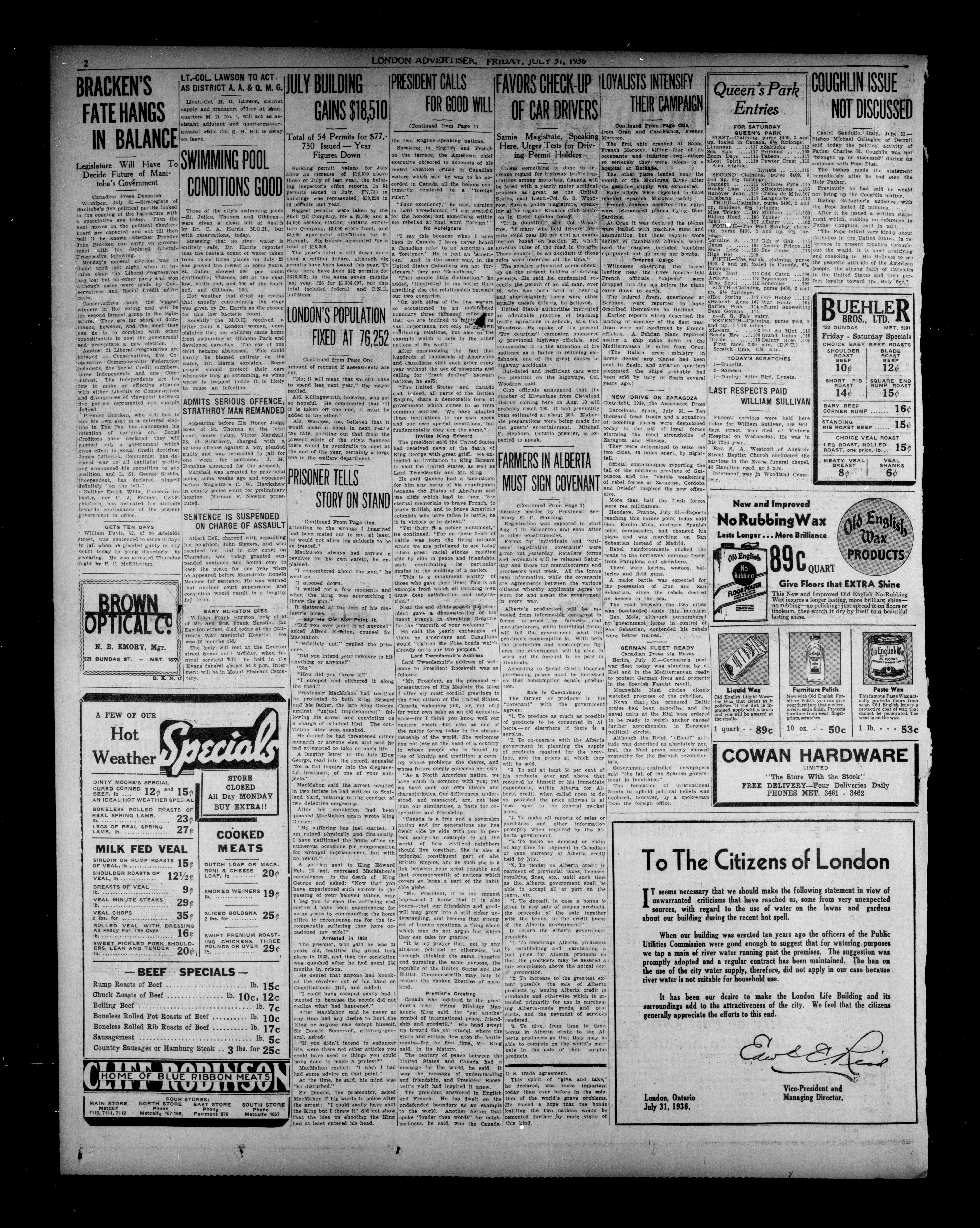 London, Ontario : London Advertiser Company, Limited, [1936]; 20 images avec recherche en texte intégral