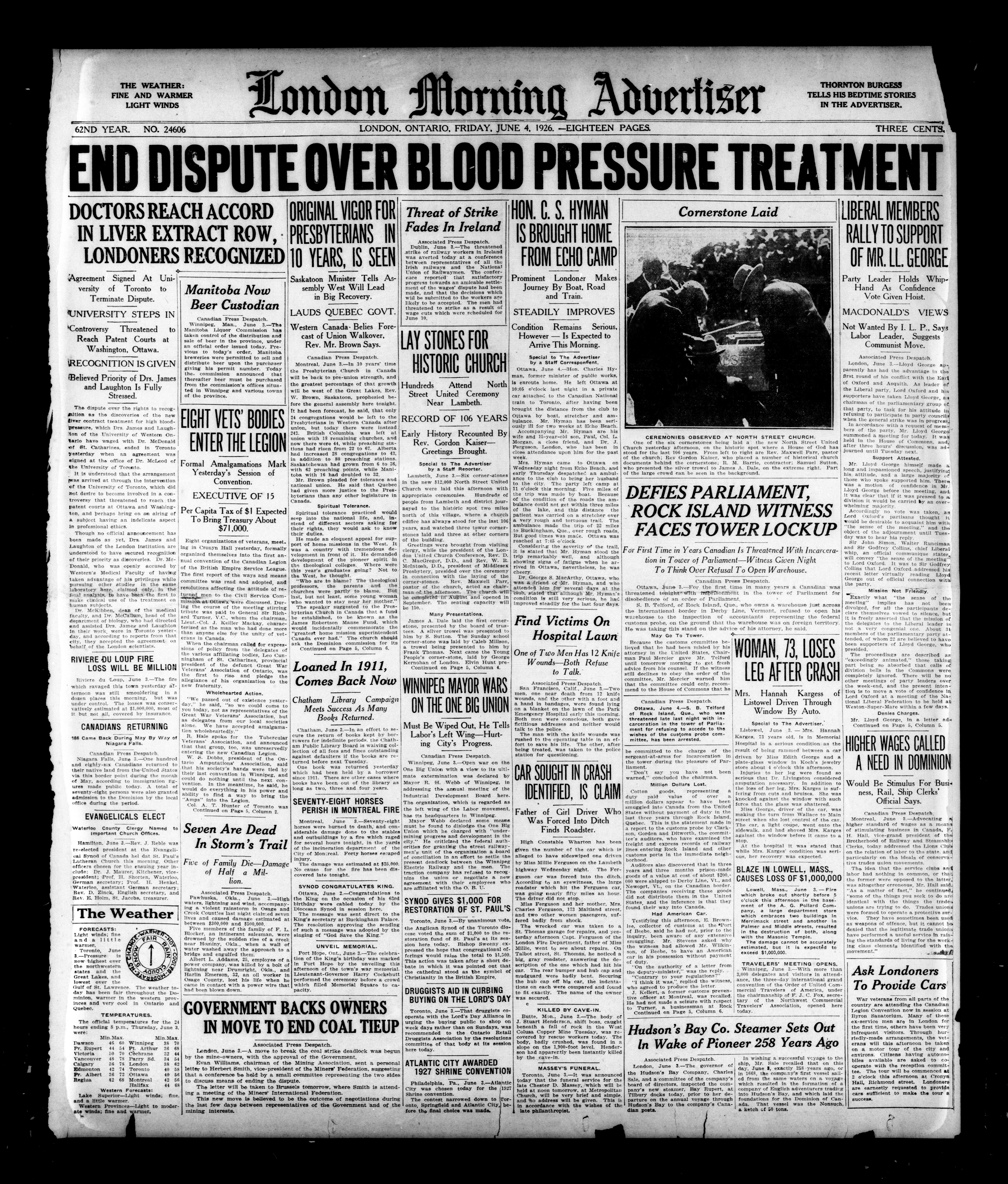 London Morning Advertiser. : London morning advertiser : 62nd Year, No. 24606 (June 4, 1926)