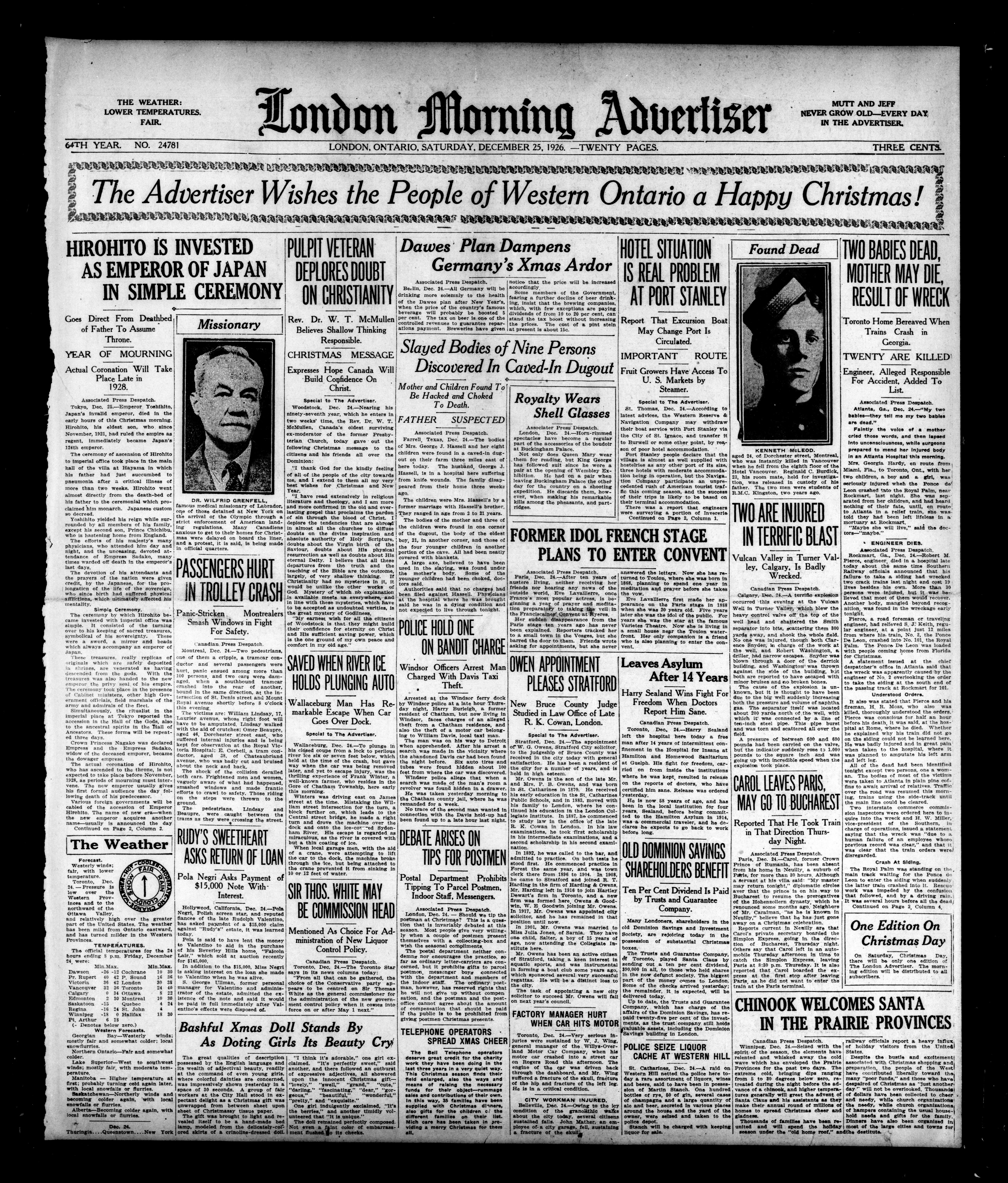 London morning advertiser : 64th Year, No. 24781 (December 25, 1926) - Published