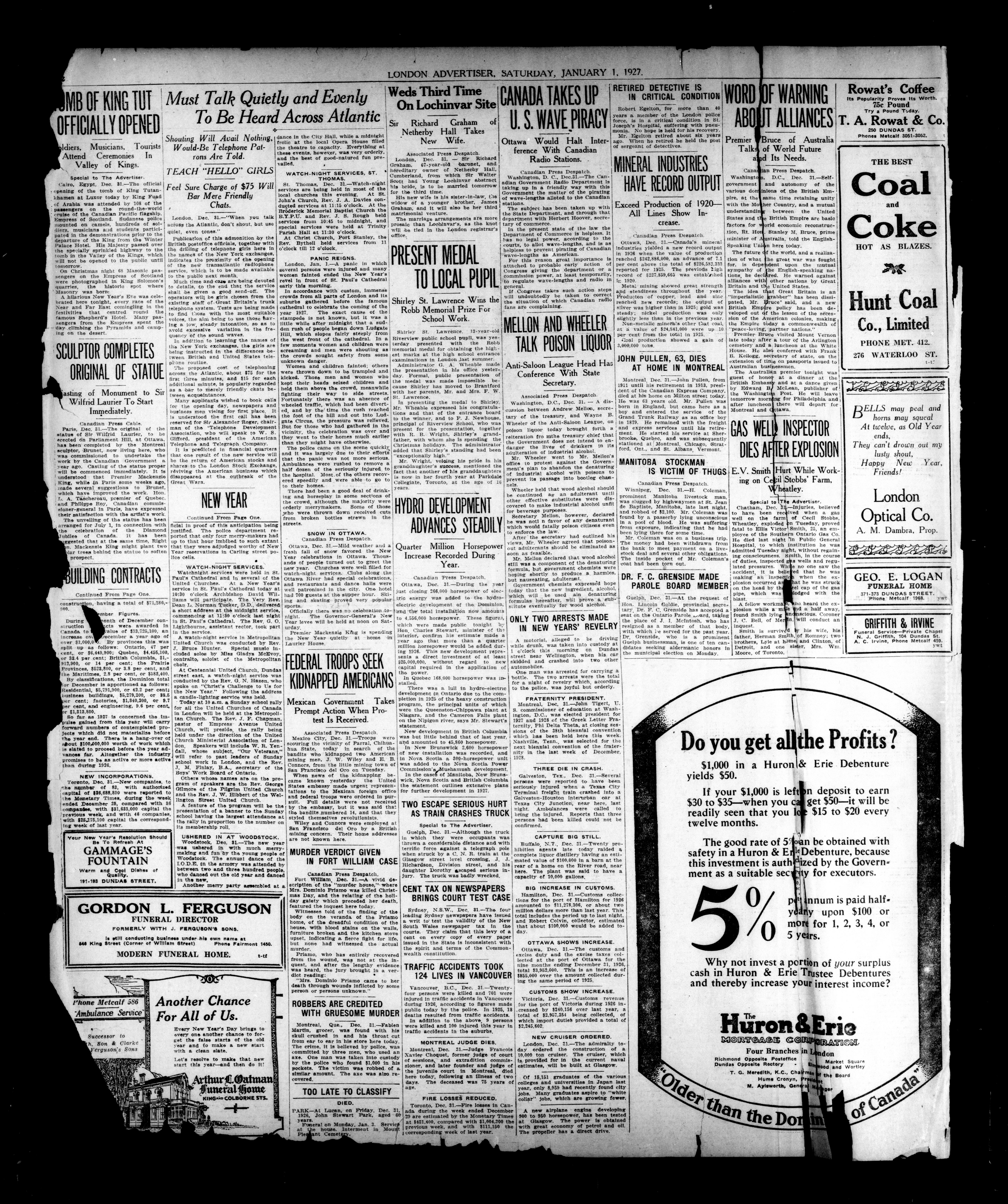 London, Ontario : London Advertiser Company, Limited, [1927]; 18 images, 0 avec recherche en texte intégral