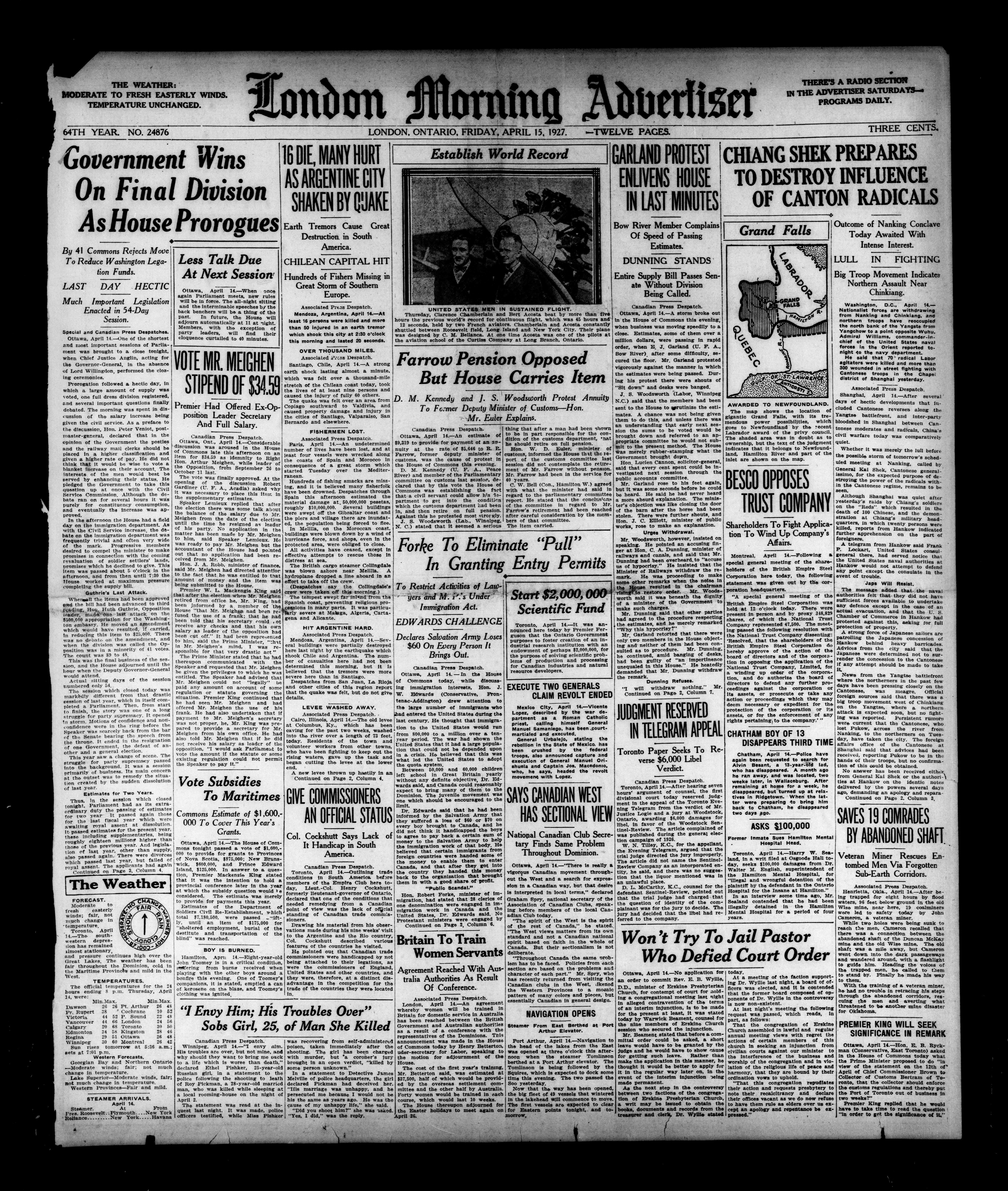 London, Ontario : London Advertiser Company, Limited, [1927]; 12 images, 0 with full-text search